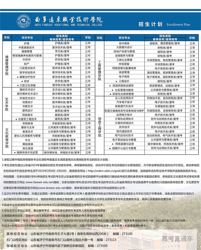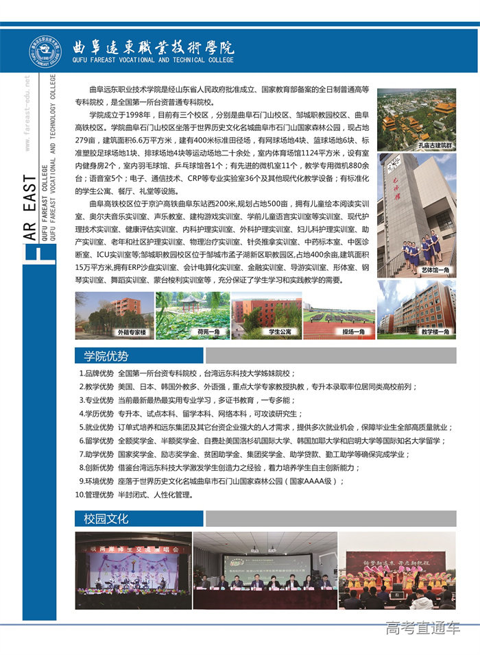 曲阜远东职业技术学院2023单独招生/综合评价招生简章