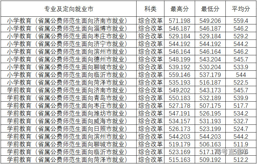 山东省公费师范生普通类专业已录取结束。录取原则为进档考生按考生总成绩从高分到低分确定录取专业及定向就业市。考生总成绩相同时,依次对比语文数学总成绩、语文或数学单科最高成绩、外语单科成绩、等级考试选考科目单科最高成绩、等级考试选考科目单科次高成绩,由高到低进行录取。具体录取情况如下: