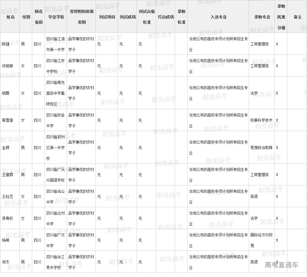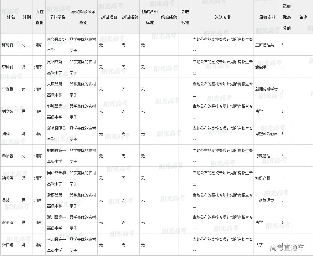 ④按分省计划择优录取的用E标注;