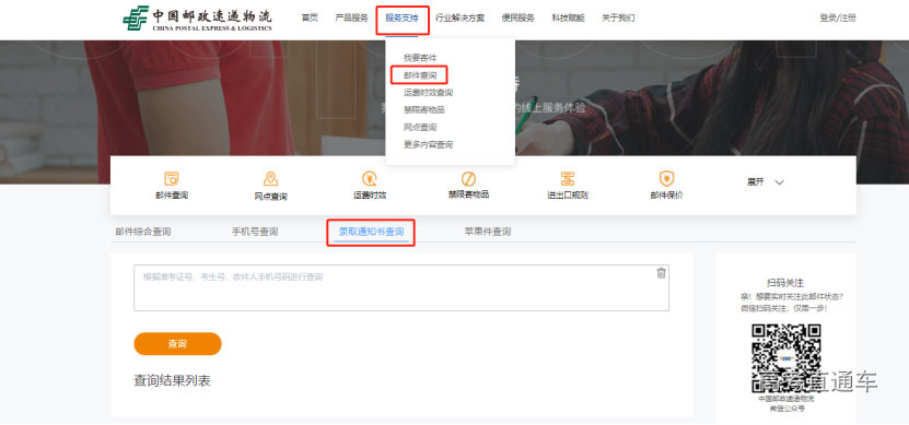 录取通知书发出后,被录取考生可登陆EMS官网(http://www.ems.com.cn/),点击“服务支持”→“邮件查询”→“录取通知书查询”进入查询页,输入考生号即可第一时间掌握派送进展。