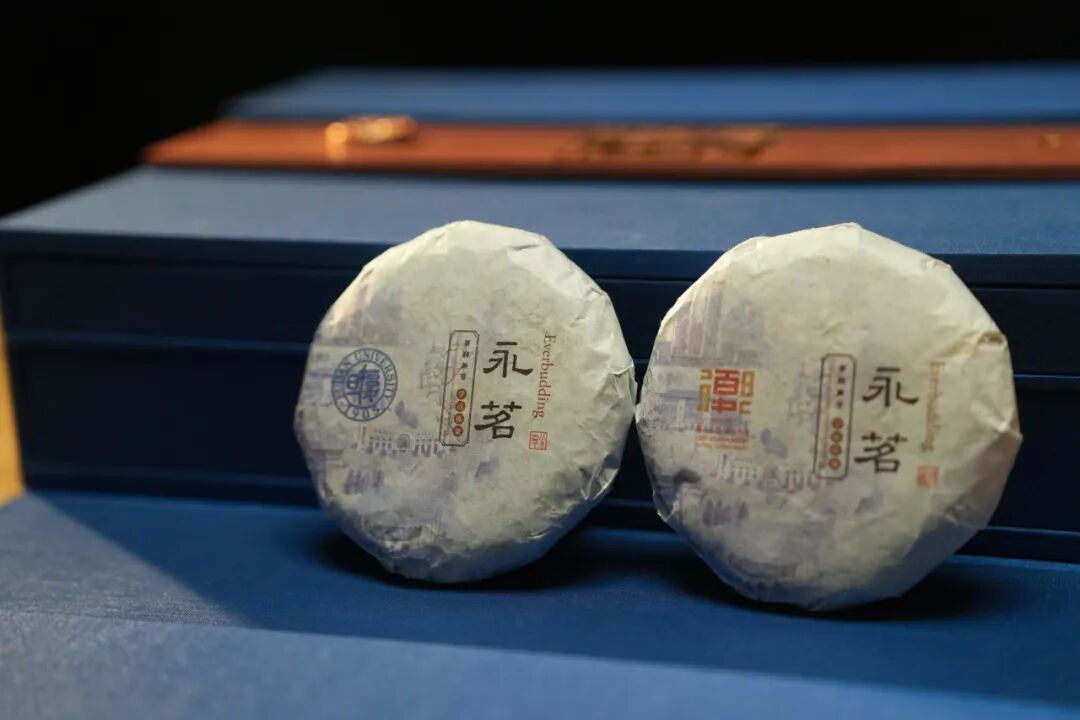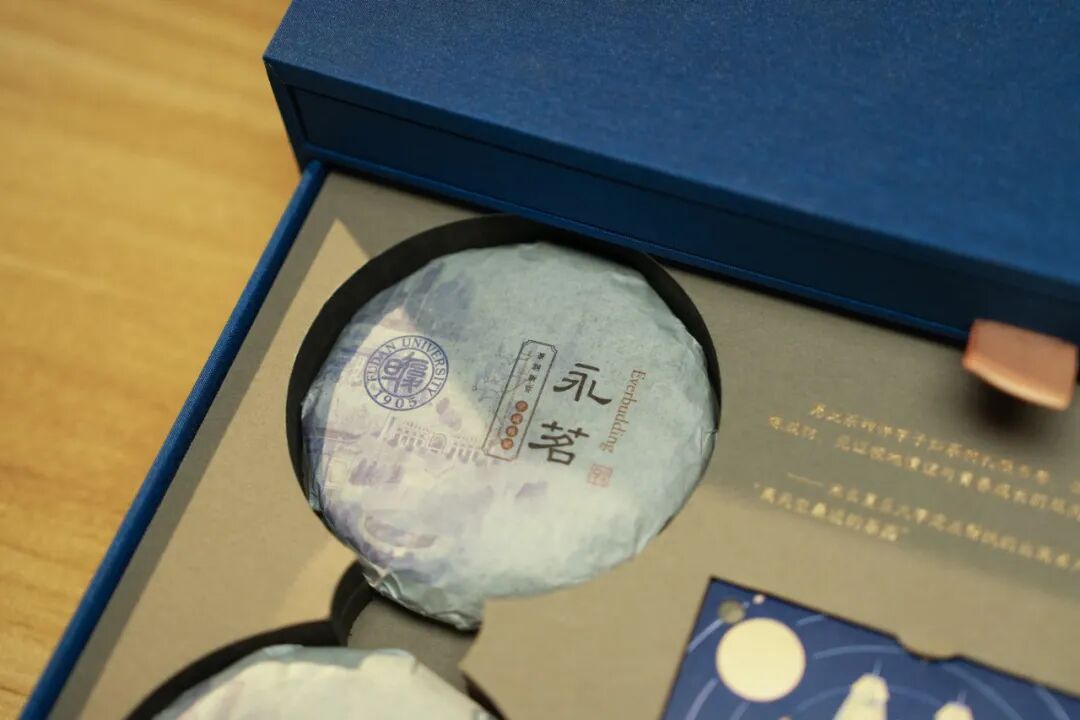 两块名为“永茗”的60克茶砖,拼成复旦“120”周年意象。茶叶源自复旦定点帮扶的云南永平县,那里有离天空最近的茶园。 一饼红茶为“分享”,邀学子与亲朋共饮录取之喜;一枚白茶取“珍藏”,可经年存放,待未来人生重要时刻回味。 永茗,谐音“永铭”,深情永铭。复旦定点帮扶云南省大理州永平13年。永平县从脱贫摘帽到乡村振兴,如今走在和美乡村的大道上。2024年,永平首位学生考入复旦大学。