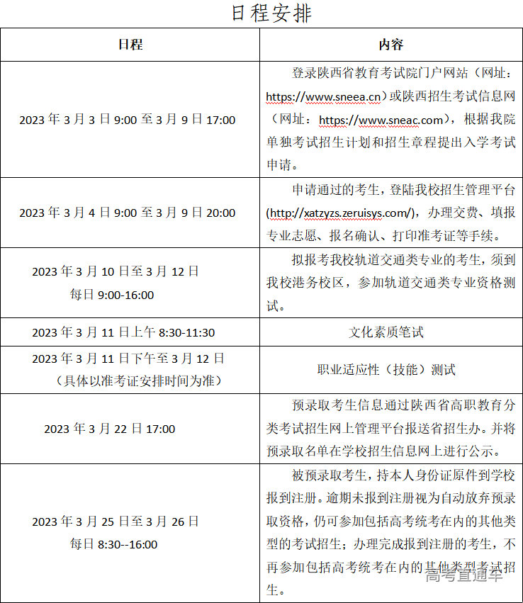 (2)申请通过的考生,须于2023年3月4日9:00至3 月9日20:00,登陆我校招生管理平台(http://xatzyzs.zeruisys.com),办理交费、填报专业志愿、报名确认、打印准考证等手续。