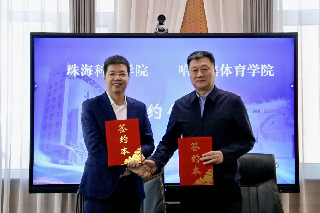 ▲学校与哈尔滨体育学院签署联合培养协议书