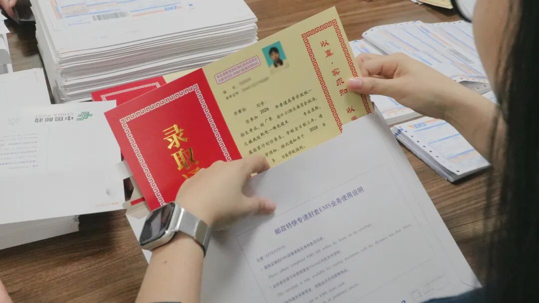 工作人员严格核对 每一份录取信息、整理入学材料 密封打包、粘贴快递单... 全程细致严谨 ▲录取通知书封装工作正有序开展▼ 他们把校园的温暖与期待 稳稳打包 送往每一个满怀憧憬的你身边