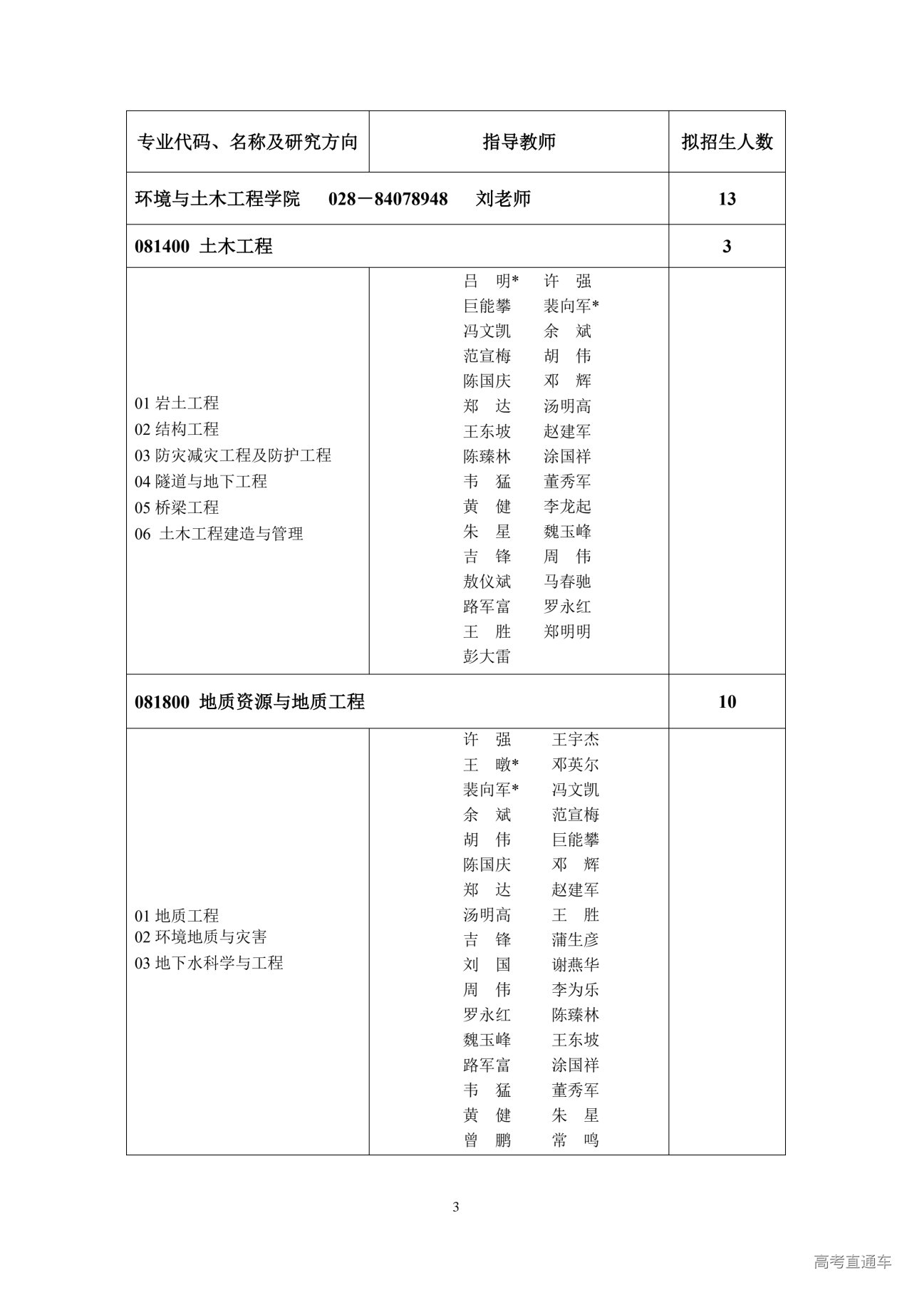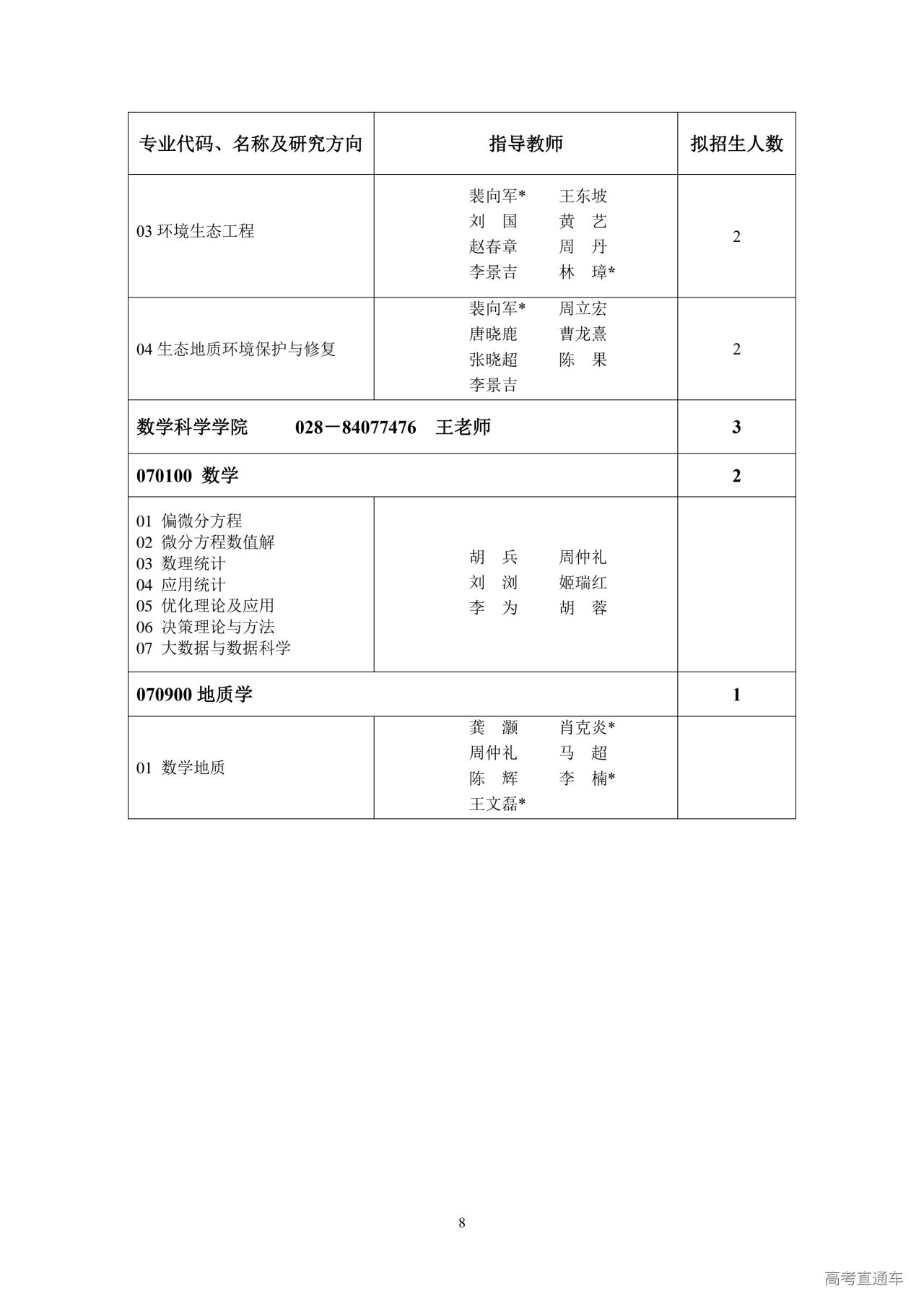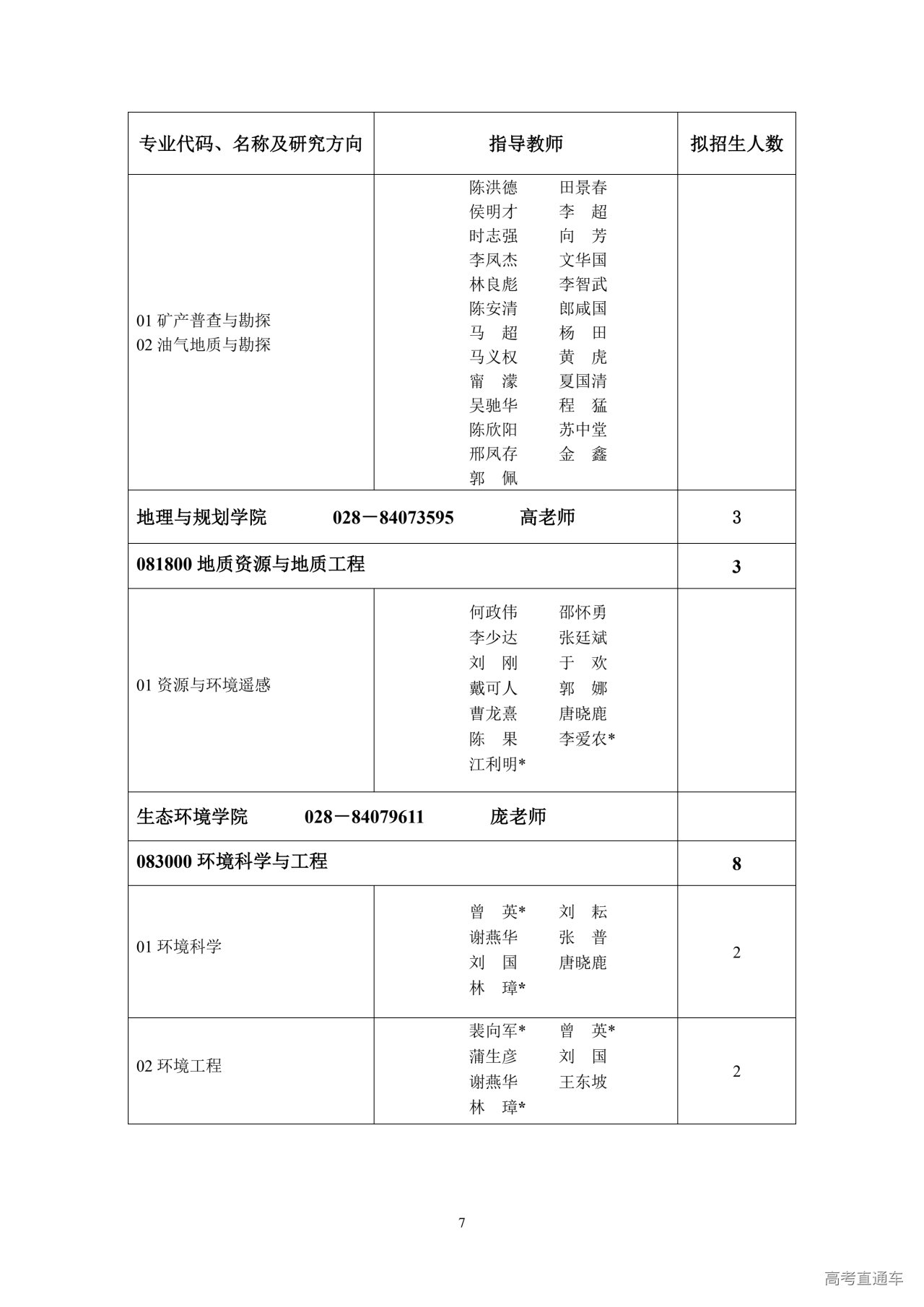 部门名称:成都理工大学研究生院招生办公室