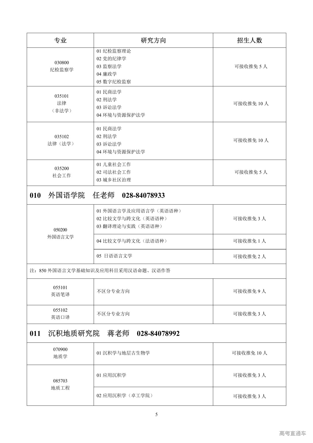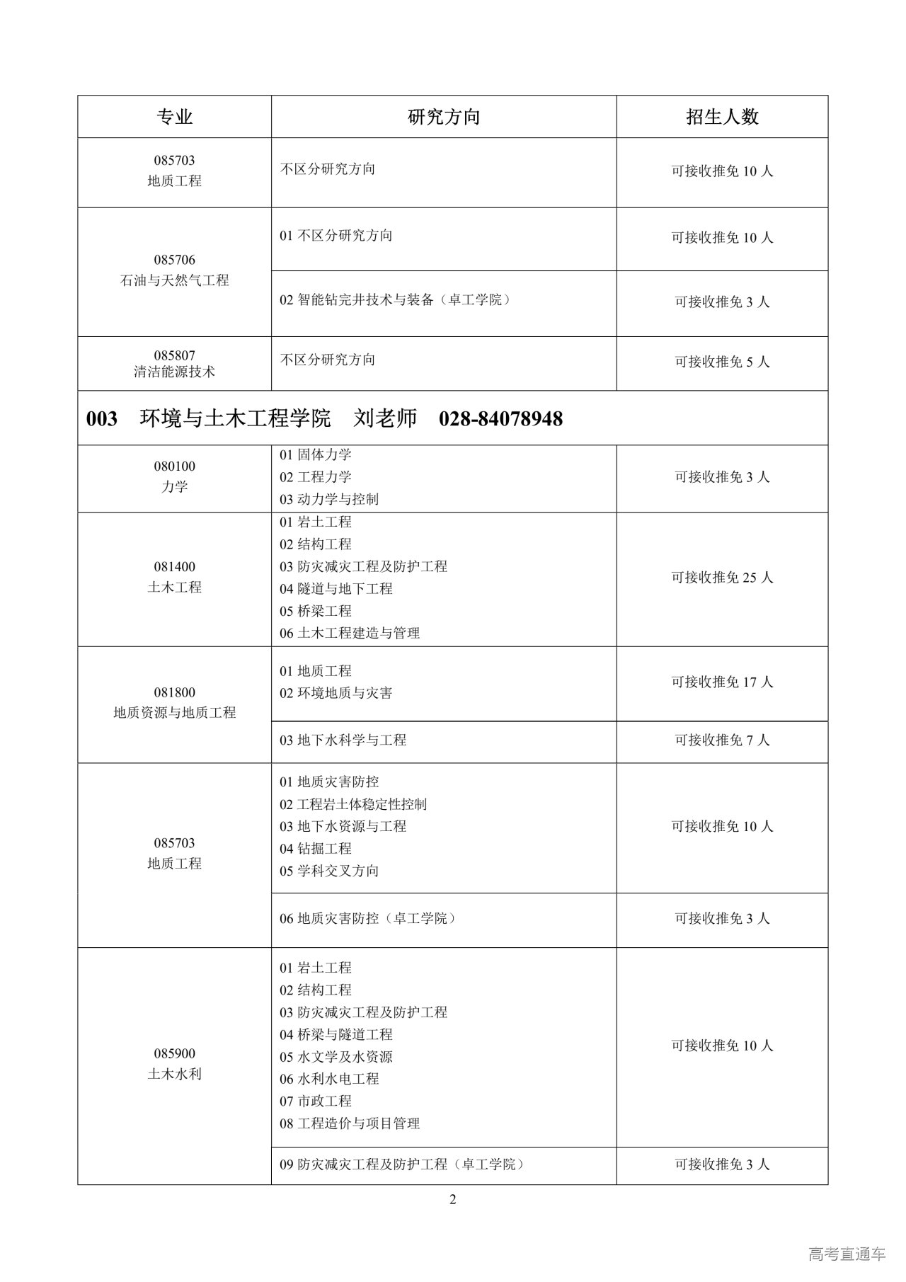2.我校数学、地质学、地球物理学、地质资源与地质工程、土木工程、石油与天然气工程、核科学与技术、环境科学与工程、管理科学与工程九个一级学科授权点接收直接攻读博士研究生,在相应学习阶段享受对应的奖助学金和津贴补助。直博生招生专业及人数以研招网正式公布为准。