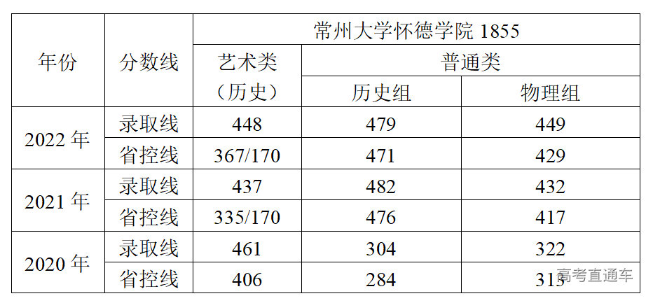 怀德学院近三年江苏省各专业招生录取控制线汇总