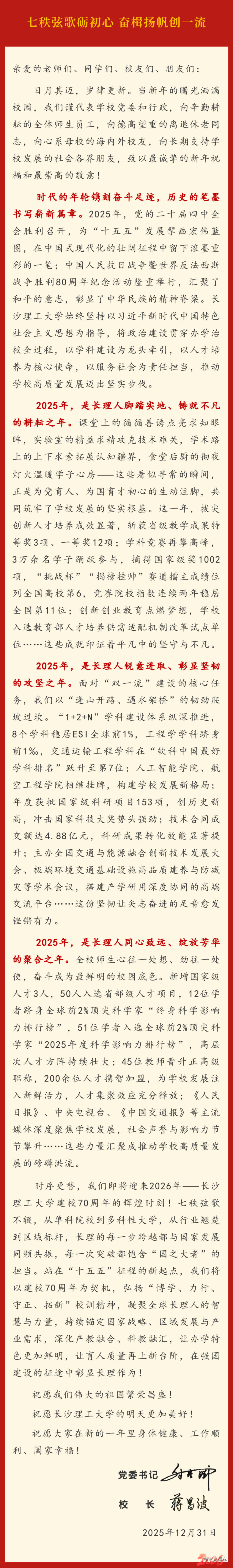 长沙理工大学2026新年贺词