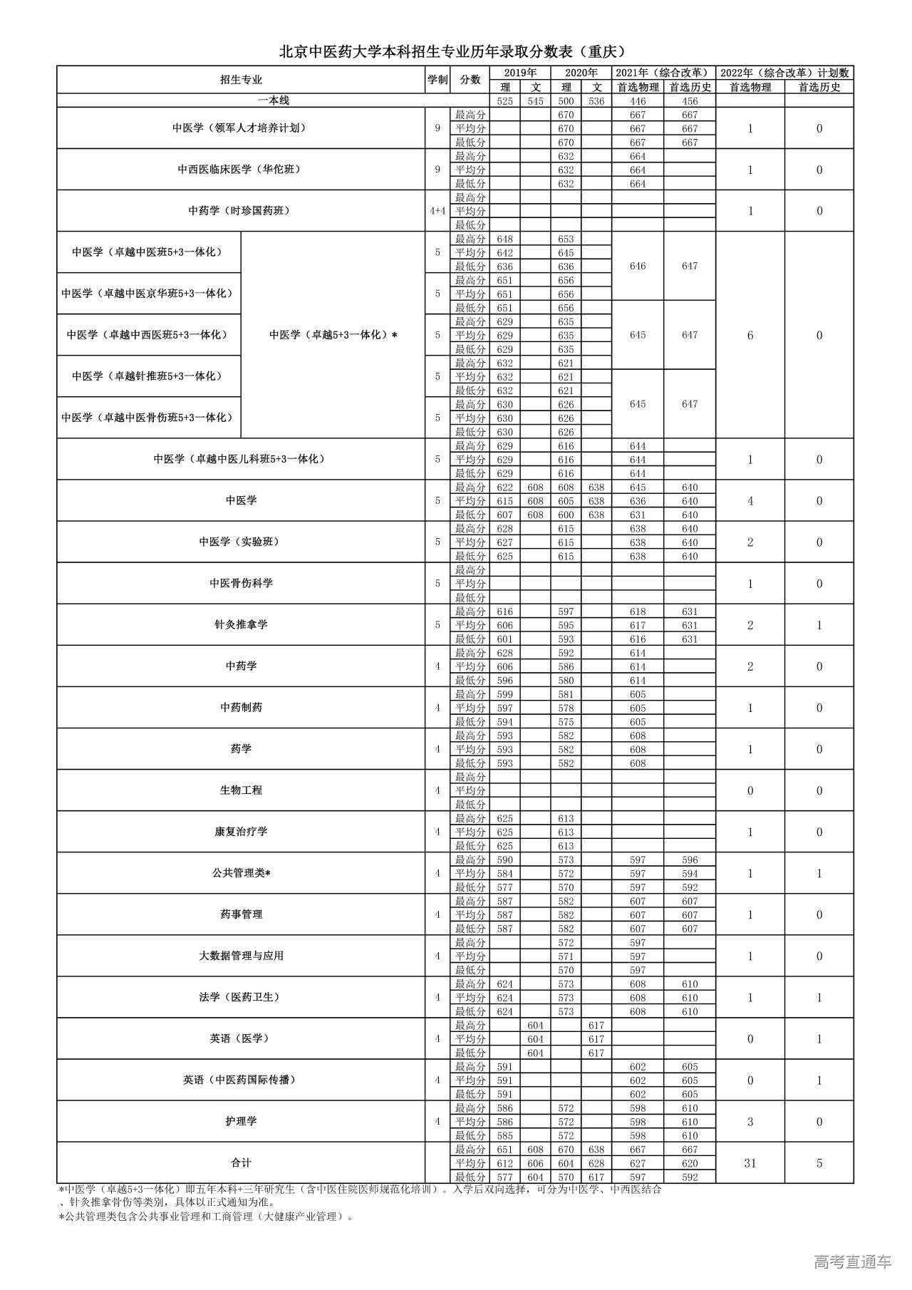 北京中医药大学2022年重庆招生计划