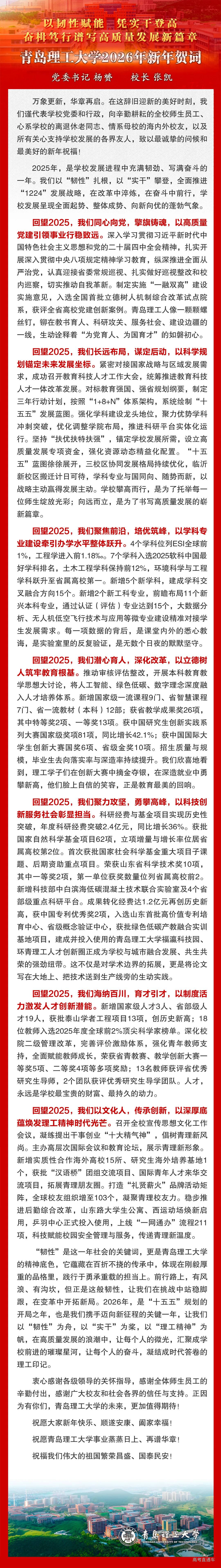 青岛理工大学2026新年贺词
