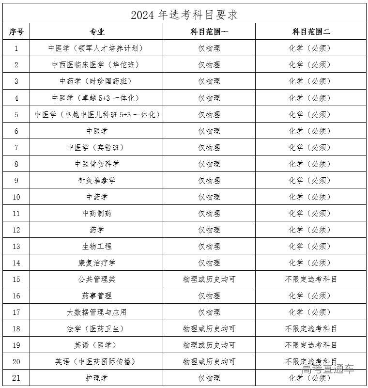 为方便高考改革地区考生做好学业规划,现将我校2024年本科招生专业选考科目暂定要求公布如下: