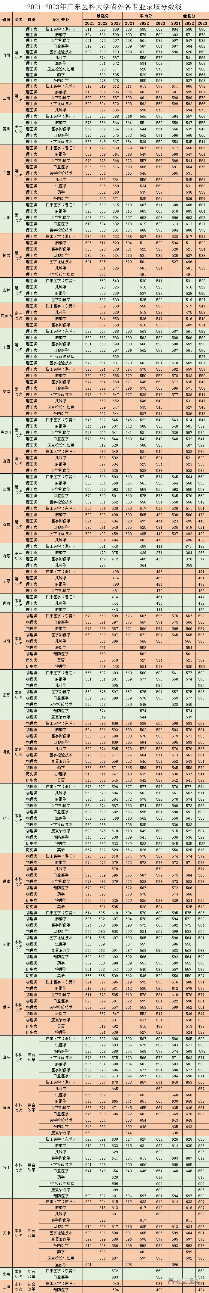 广东医科大学省外各专业录取分数线(2021-2023年)
