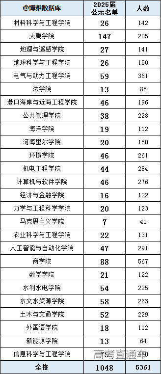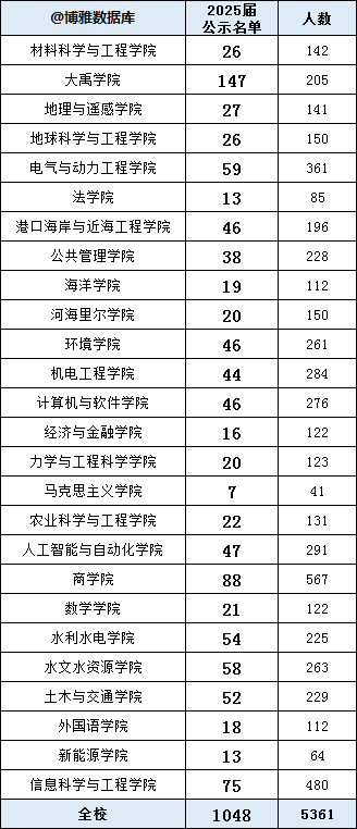 根据河海大学2025年推荐优秀应届本科毕业生免试攻读研究生公示名单