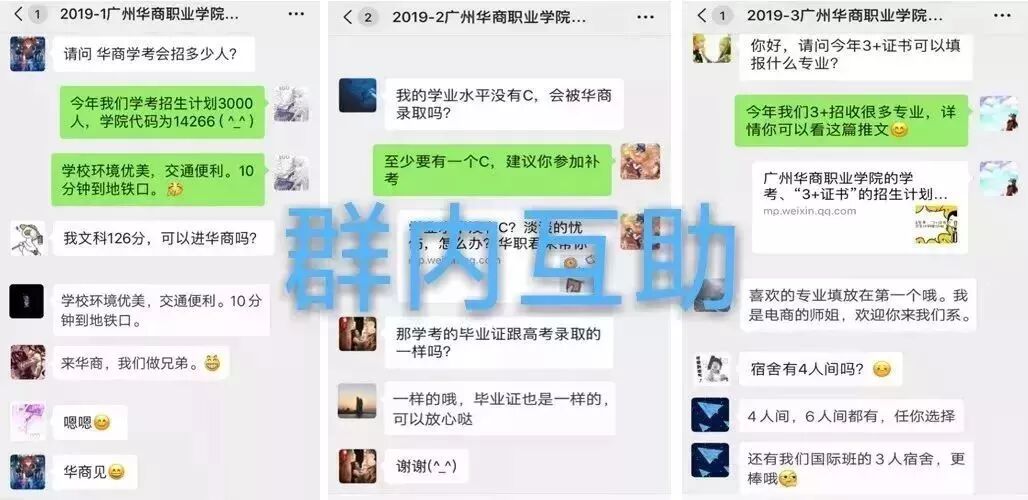 群内有2019年高三的小伙伴,还有华商职院的老师及可爱聪明的师兄师姐,大家可以相互交流,解答你的疑惑,共享最新的资讯。