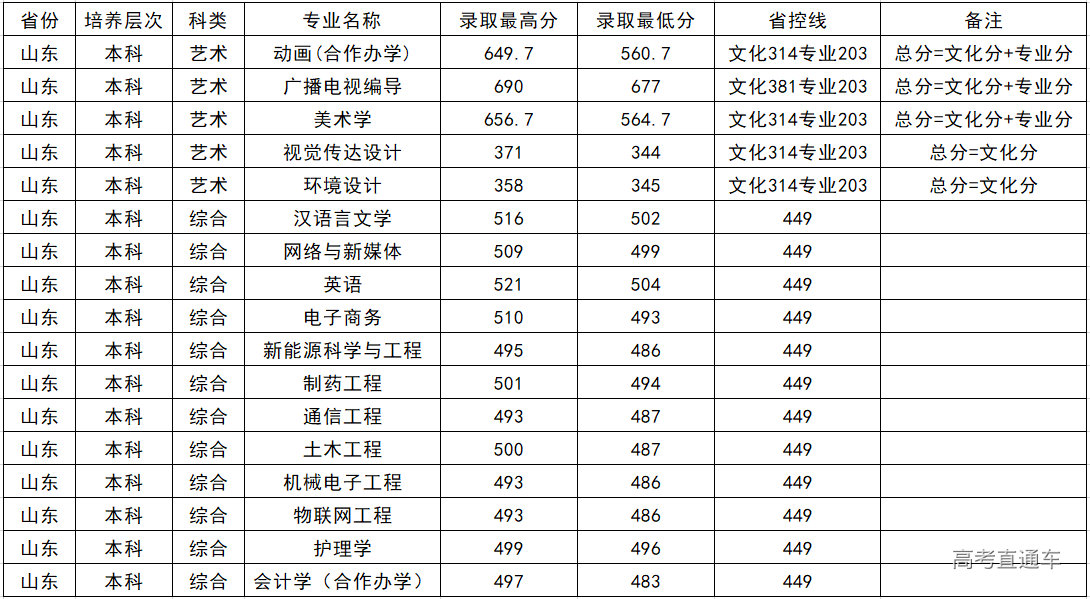 黄淮学院2020年山东省招生录取统计