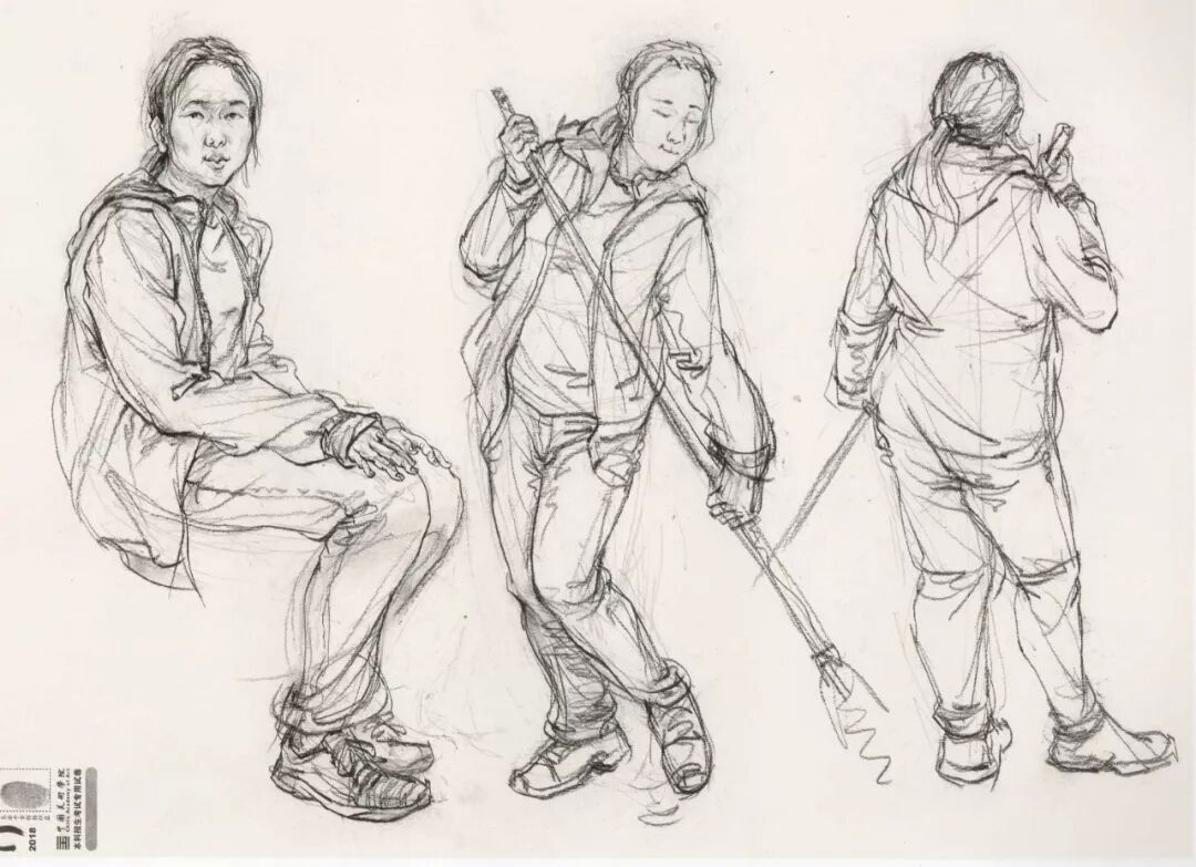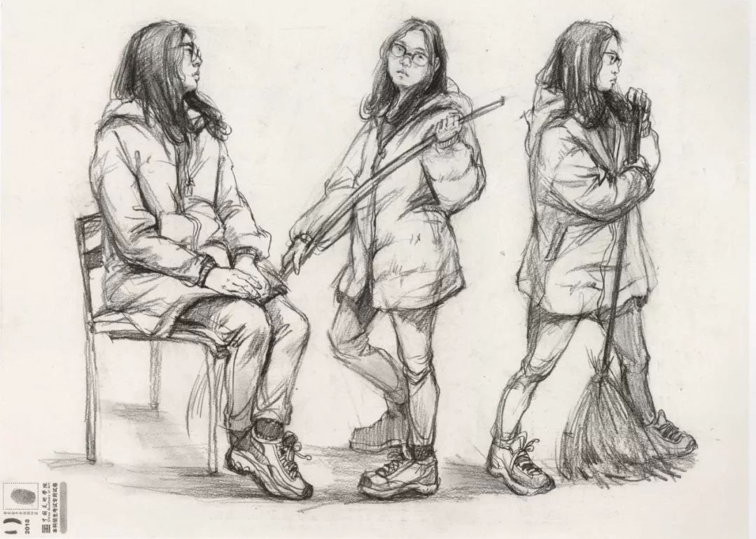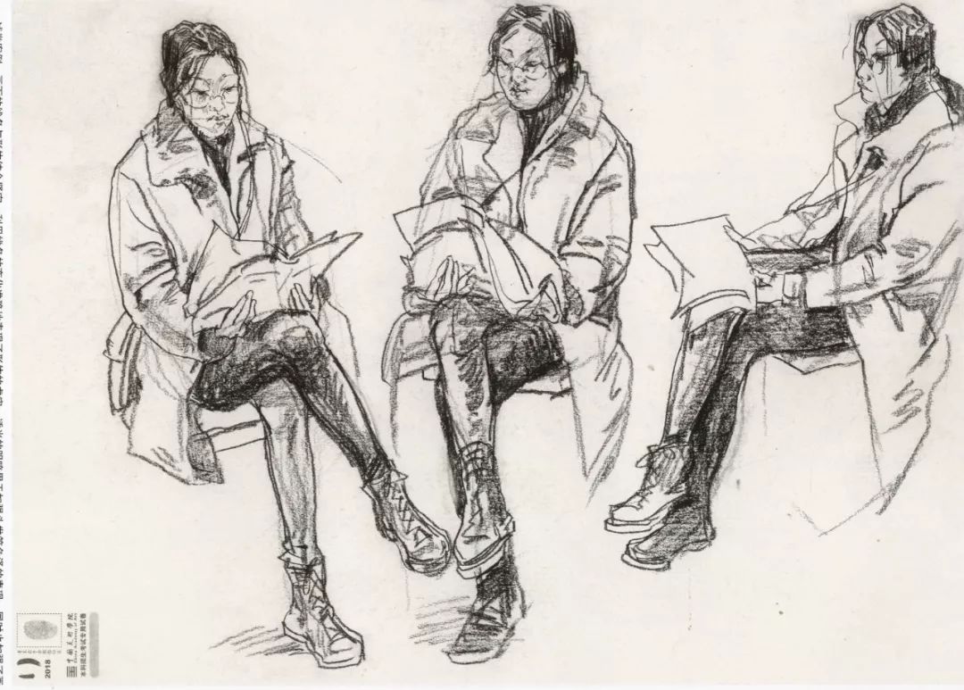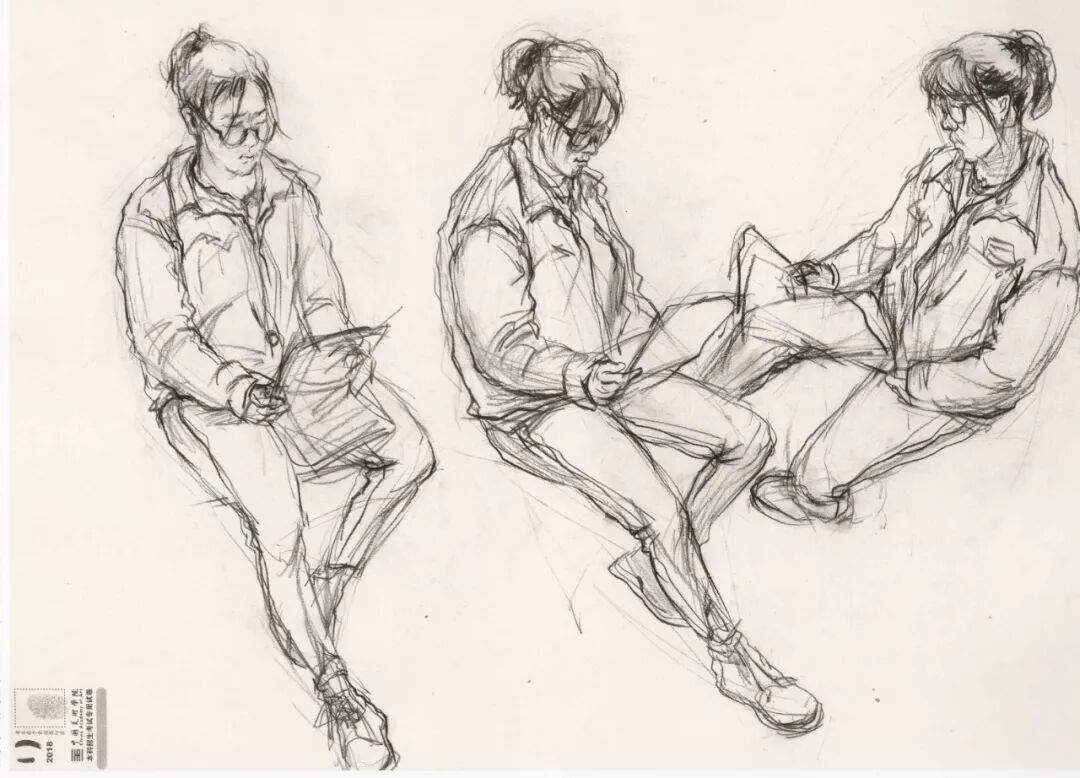 速写考题:单人写生,三个不同角度