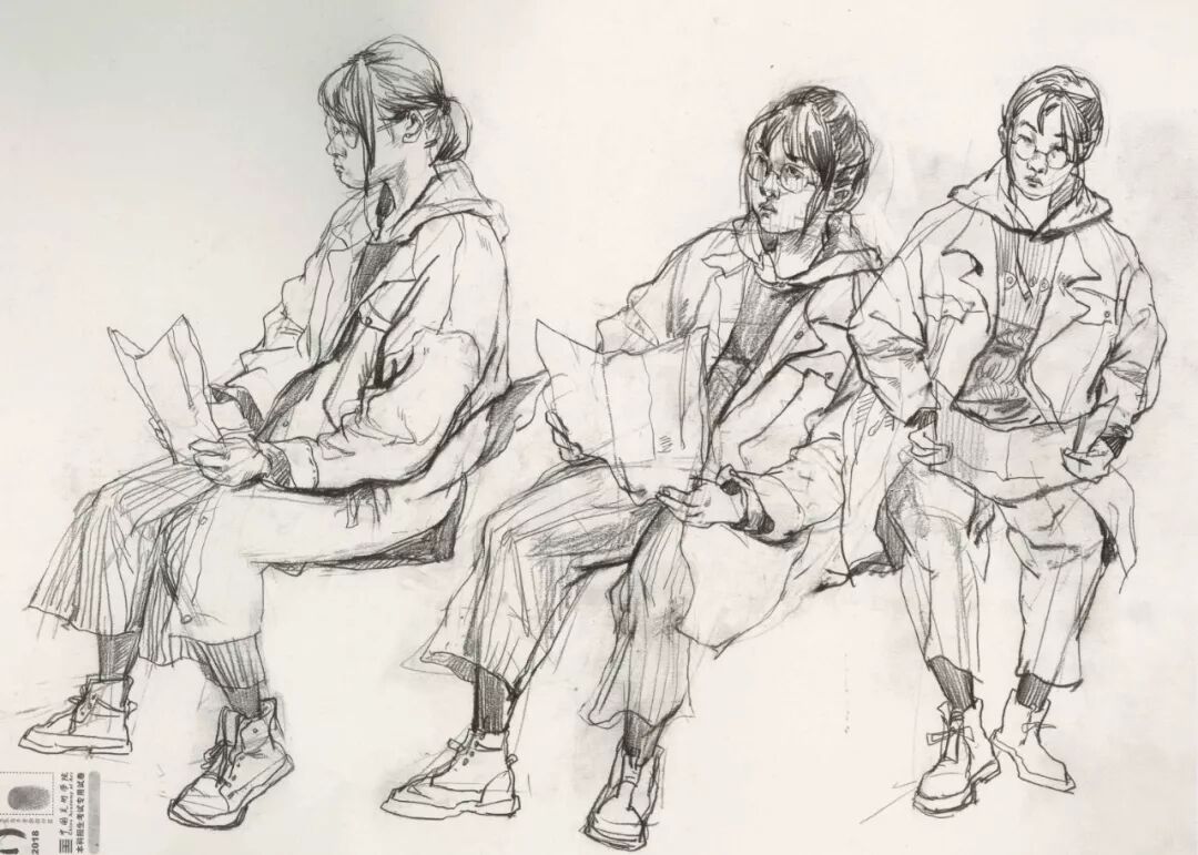 速写考题:场景命题速写,三个看书的人