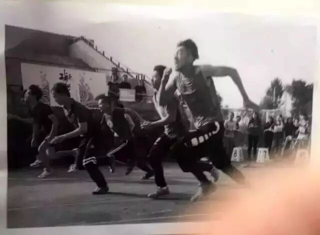 素描考题:半身带手写生速写考题:以线性为主,国美运动会跑步的男生,后面是主席台和足球球门,边上有女学生在看。