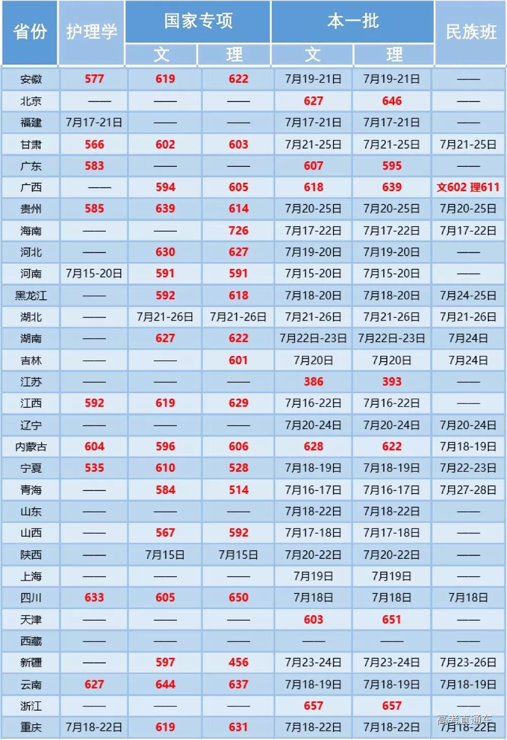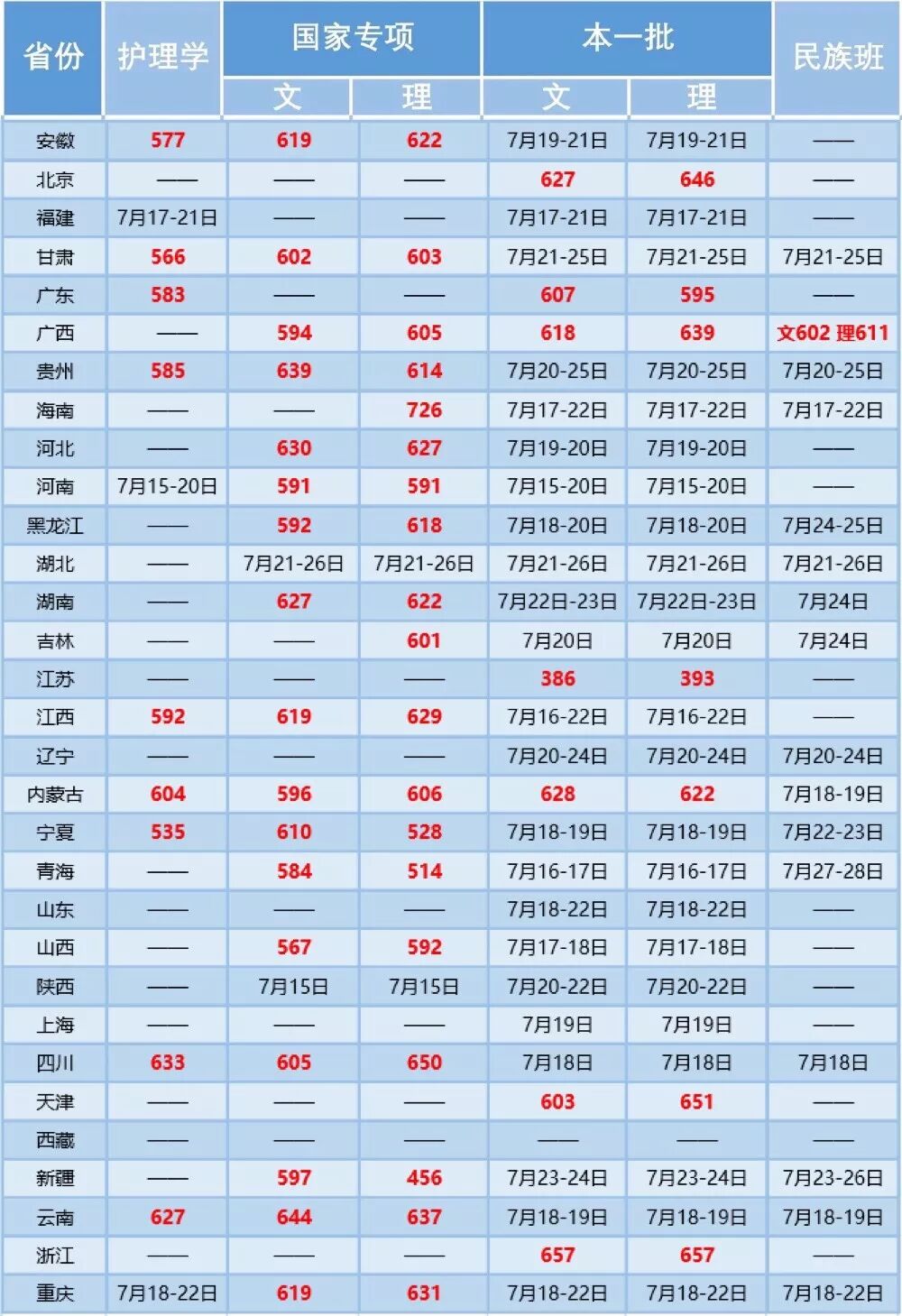 1、本表格信息根据各省级招办的录取安排整理汇总,具体时间以实际出档为准;