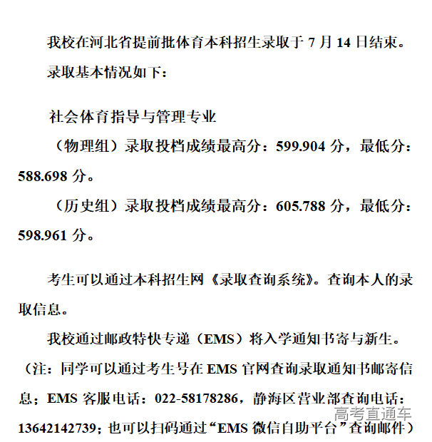 天津中医药大学2022河北省提前批体育本科招生录取结束
