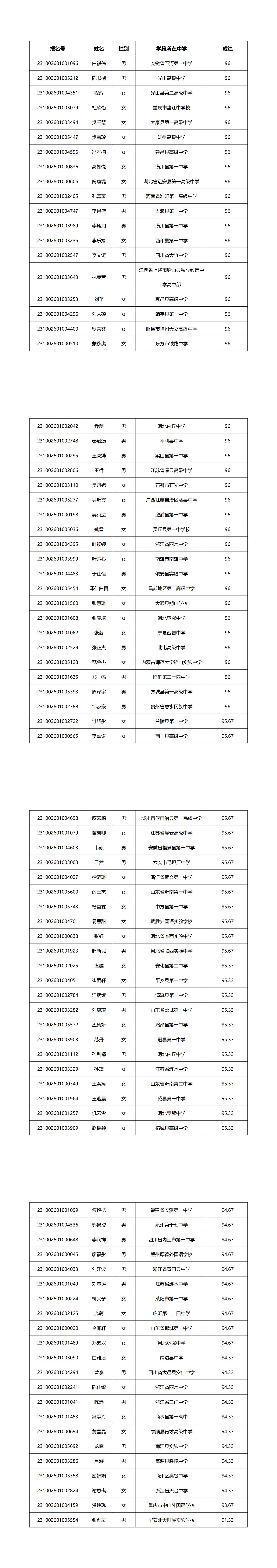 根据《北京中医药大学2023年杏林计划招生简章》,经我校本科招生工作领导小组审议决定,现将我校2023年杏林计划入选资格考生名单公示如下(还需经阳光高考平台公示无异议)。