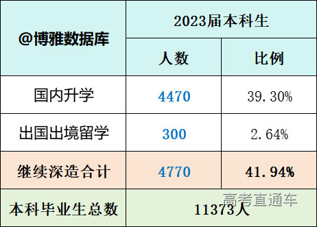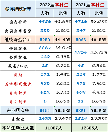 注:根据往届就业质量报告,深造4770人数偏低,也可能是4770+300?需等2023届就业质量报告发布后修正。