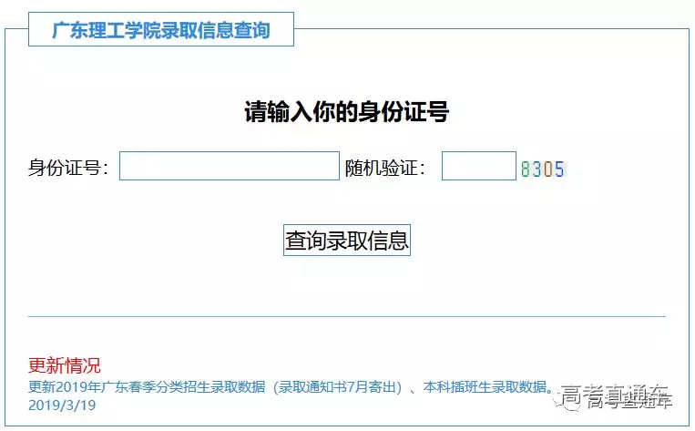 广东理工学院2019年高考录取查询入口,点此进入。