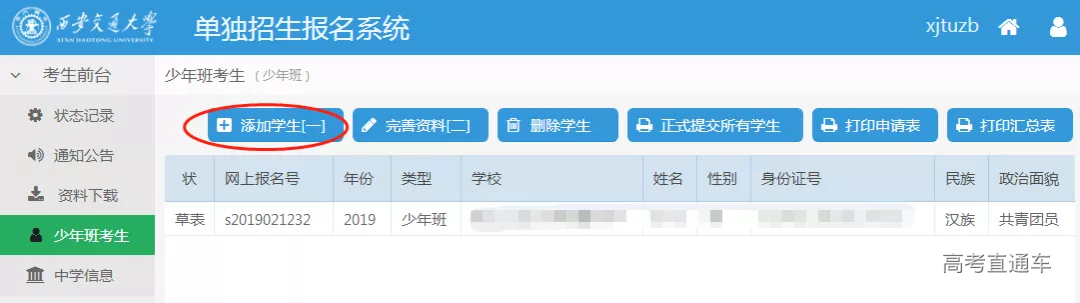 很多学校、家长纷纷咨询学科竞赛网如何进行西少的报名,其实西交大是非常欢迎初中学校报名的。如果是往年报过少年班的学校,往年报名的用户名及密码都可以继续使用,随时查看本单位考生的报名、考试和录取状态。如果往年没有报过西交大少年班的学校,可以先在西交大招生网上注册登录,下载中学推荐资格申请表发到西交大招办,同意后就可以报名。报名单位只须在网上报名,无需寄送纸质报名材料。各中学报名人数上限以报名系统显示为准。