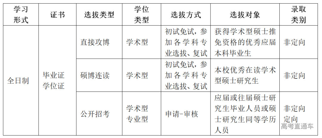 西南交通大学博士研究生招生选拔方式主要包括三种类型:直接攻博、硕博连读和公开招考:
