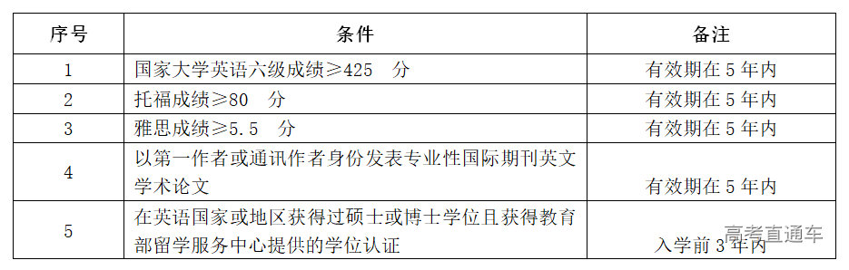外语水平考试时间:2022年4月2日上午 8:30—11:30,英语语种考生申请免试条件如下所示: