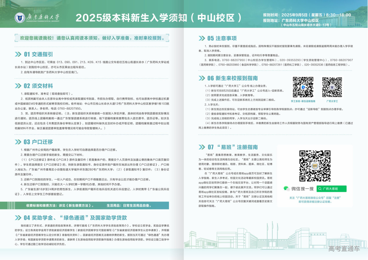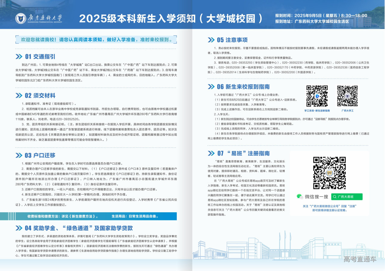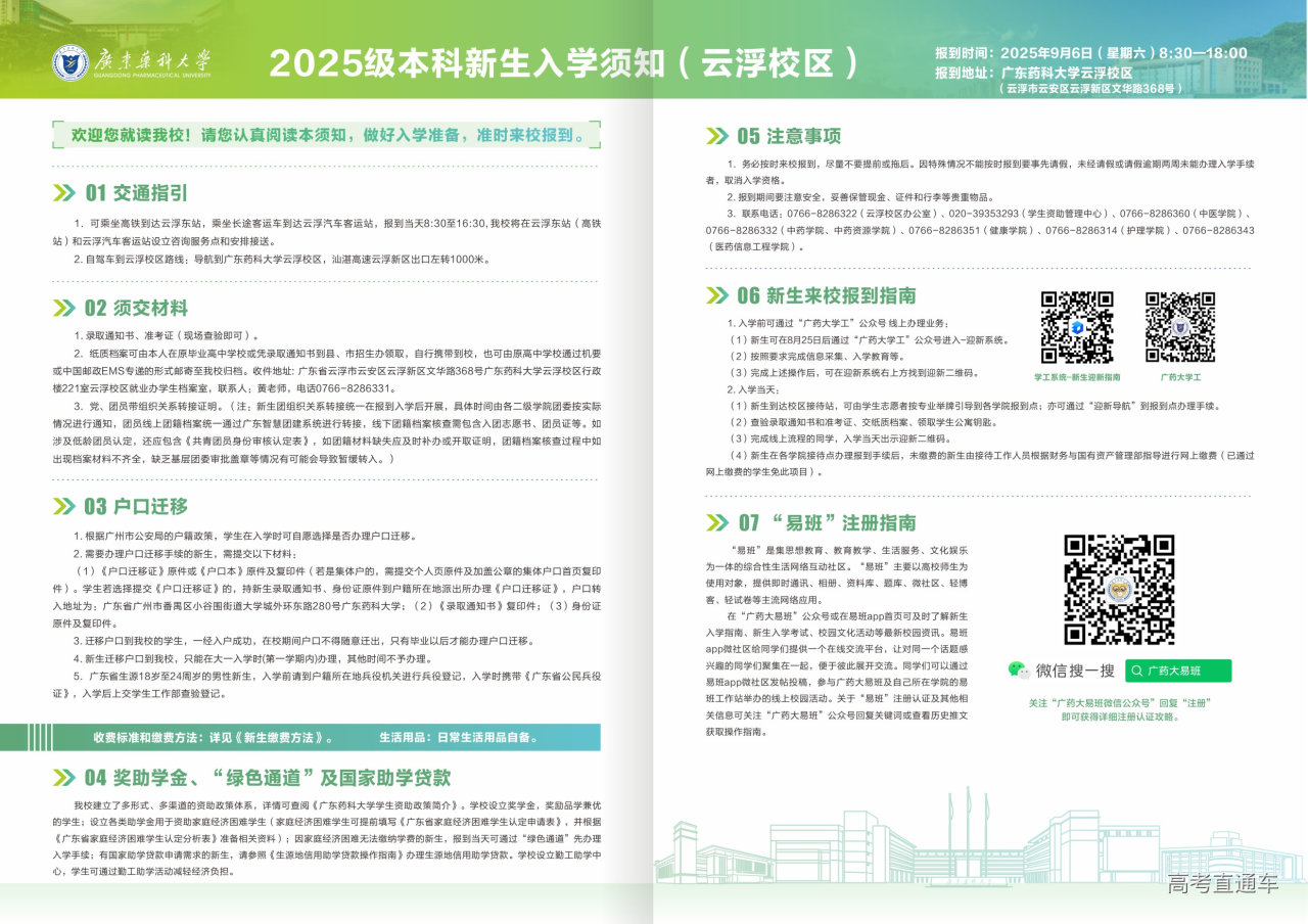 广东药科大学2025级本科新生入学须知