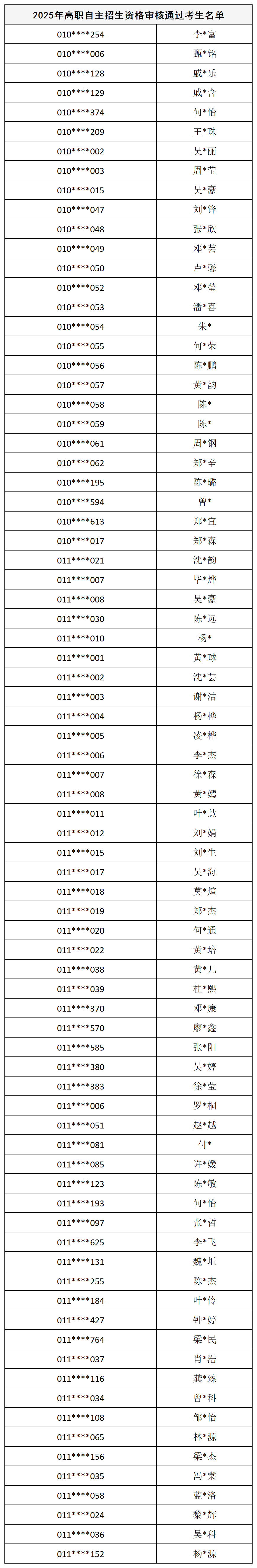 现将符合学校2025年高职自主招生报考资格的考生名单公布如下: