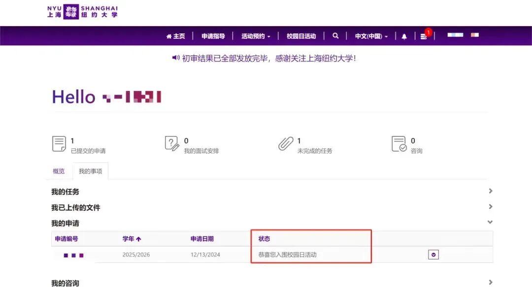 恭喜你以优异的成绩和资质入选上海纽约大学2025年度本科招生校园日活动。此次校园日活动分为两个部分:在线视频面试与线下校园日活动。候选人必须完成在线视频面试部分,方可回到申请系统中选择并预约线下校园活动的具体日期。 考生需于2025年3月9日前完成英文面试。 1.登陆申请上海纽约大学时使用的注册邮箱,查收初审结果邮件。 2.登陆上海纽约大学Slate系统,查看站内信。 查询地址: https://apply.shanghai.nyu.edu/SignIn?returnUrl=%2Fapplicant-home-page%2F 注意:无论是否通过初审选拔,均会收到邮件/系统通知。 上海纽约大学将于3月15、16、22、23、29、30日举办多场次线下校园日活动,考生可以任选其中一场参加。每场形式流程完全一致,绝不重复考题内容,不存在先后参与导致的差异。入围候选人在完成线上视频面试后,方可进入系统选择一个最合适的日期到访校园并参与活动。完成线下校园日活动是最终获得录取资格的必要条件之一。日程安排如下: “校园日活动”全程用英语进行,活动涵盖“学术及课程体系简介、课堂体验、英语综合写作、校园趣游、团队活动”多个模块,主要考察学生的英语运用能力,以及求知欲、领导力、学习能力、适应能力、沟通表达能力、心理素质、团队精神等各方面素质。旨在全面评估学生的综合素质、学术潜力,以及与学校教育愿景的契合度。 上海纽约大学近三年校测考情揭秘 2024年 2023年 2022年