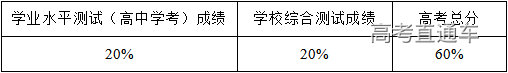 2.综合成绩计算:综合成绩由学业水平测试(高中学考)成绩、学校综合测试成绩、高考成绩三部分组成。综合成绩按“学业水平测试(高中学考)成绩(折算成满分100分)×20%+学校综合测试成绩(折算成满分100分)×20%+高考总分(折算成满分100分)×60%”计算形成。