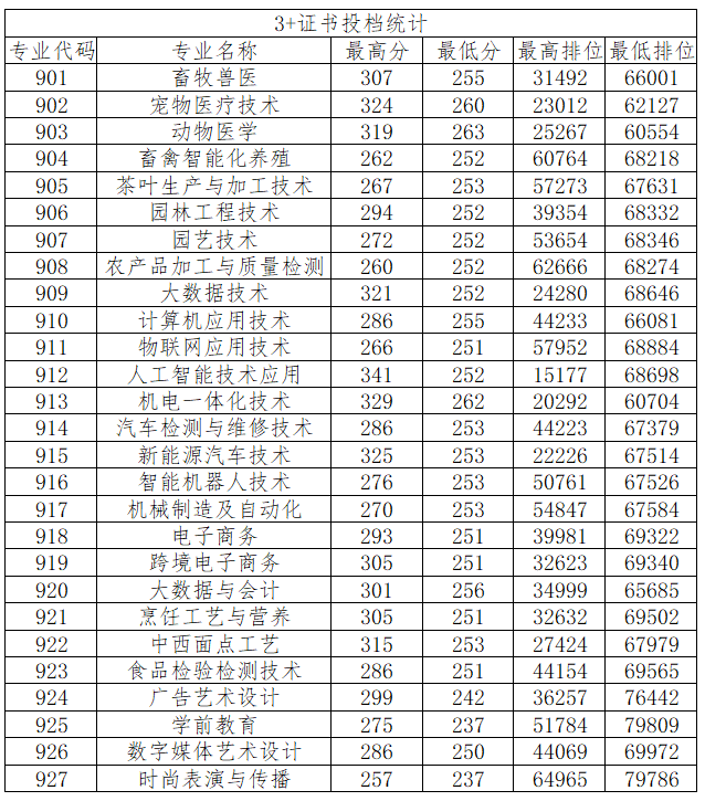 3月27日,广东省2026年春季高考(“依学考录取”和“3+证书”专科批次)正式投档。我校“依学考录取”和“3+证书”各专业组生源充足,均一次性满档。“依学考录取”和“3+证书”各专业投档情况见下表。