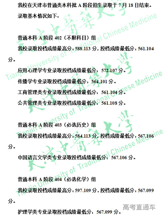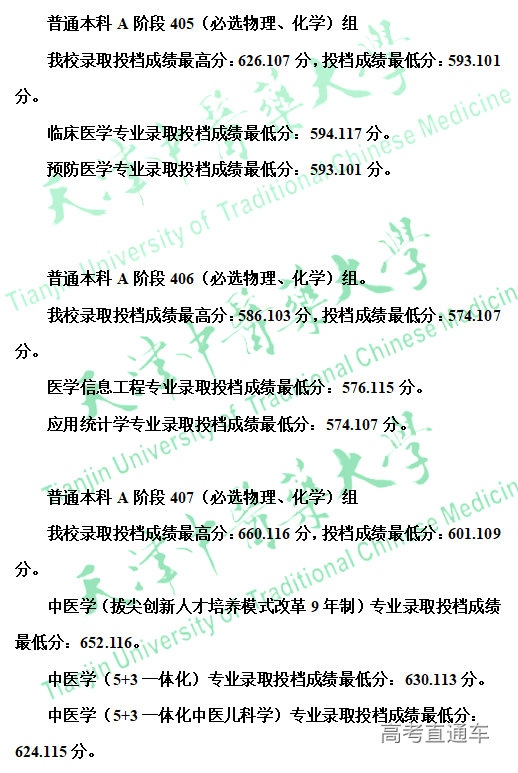 天津中医药大学2024年在天津市普通类本科批A阶段招生录取结束