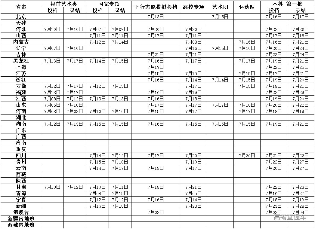 注:具体以各省(市、自治区)投档、录取、录结时间为准。