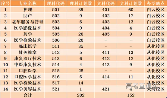 学院占地面积664.6亩,分白云、从化、天河、越秀四个校区。学院师资力量雄厚,现有各类在校生7000余人。开设有护理、助产、老年服务与管理、临床医学、药学、口腔医学、口腔医学技术、医学检验技术、医学影像技术、康复治疗技术、针灸推拿、中医康复技术和医学美容技术等13个专业。学院拥有1家附属医院,78个实习单位,建有护理、老年、药学、医学检验技术、口腔医学、临床医学、医学影像技术、康复治疗技术、基础医学、公共基础等十大实训(实验)中心。