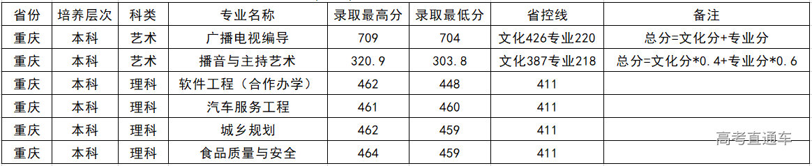 黄淮学院2020年重庆市招生录取统计