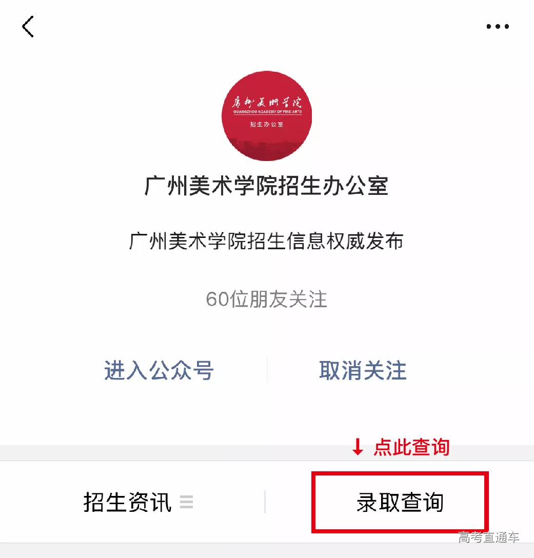 方法2 关注广州美术学院招生办公室官方微信公号: GAFA_ZS 点击“录取查询”