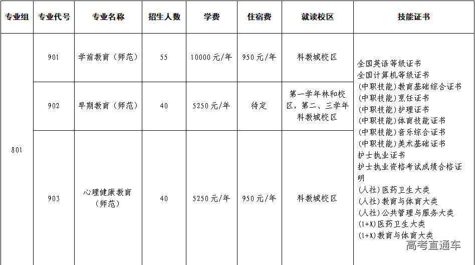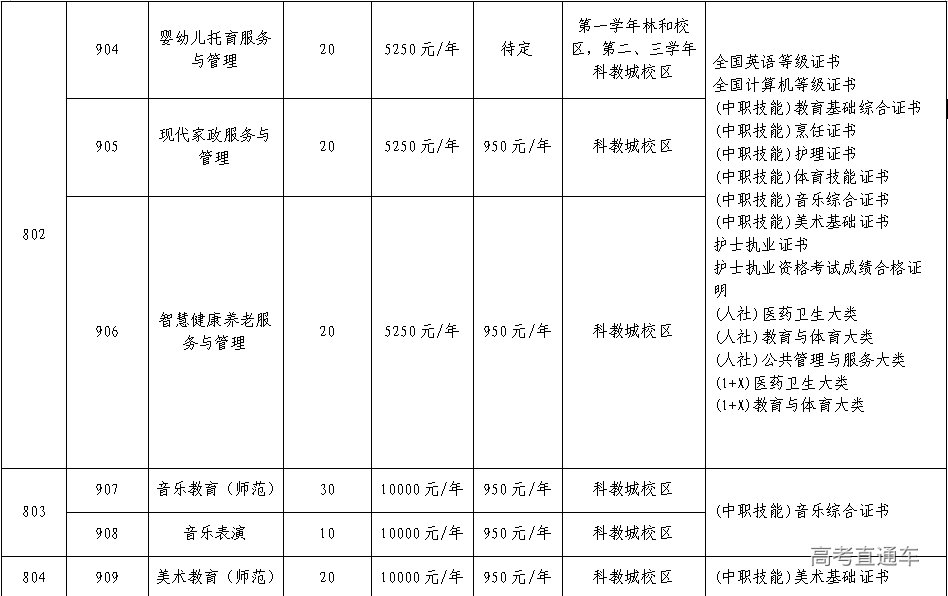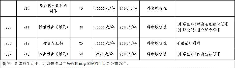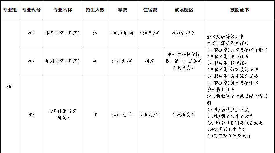 2026年“依据普通高中学业水平考试成绩”招生专业与人数 2026年“3+证书”招生专业与人数 学前教育专业。学前教育专业是我校王牌专业,培养具有良好的职业道德修养、科学的学前教育理念、扎实的学前教育专业基础知识和保教实践能力,针对幼儿园和托幼机构从事幼儿保教工作的应用型人才。 早期教育专业。培养具有良好的职业道德修养、科学的早期教育理念、系统的儿童发展理论、熟练的婴幼儿照护技能以及较强的岗位适应能力,针对早期教育及托幼机构从事早期教育和婴幼儿照护服务工作的应用型人才。 婴幼儿托育服务与管理专业。培养理想信念坚定,德、智、体、美、劳全面发展,具有科学的婴幼儿托育服务与管理理念、熟练的婴幼儿照护等技能,能在托幼机构、婴幼儿保健护理机构从事保育、教育等相关工作的高素质应用型人才。 音乐教育专业。培养具有良好的职业道德修养、扎实的音乐教育基本理论、较强的音乐教育教学能力,针对幼儿园、小学以及综合艺术教育机构从事音乐教育教学活动的应用型人才。 美术教育专业。培养具有较好的美术素养、扎实的美术专业知识、一定水平的美术鉴赏、创作能力和教学能力,针对幼儿园、小学及相关美术教育机构从事美术教育教学、设计工作以及培训管理的应用型人才。 舞蹈教育专业。培养理想信念坚定,德、智、体、美、劳全面发展,具有较好的舞蹈素养、扎实的舞蹈专业基础、职业教育教学能力与创作能力,能在幼儿园、舞蹈教育机构从事幼儿舞蹈教育教学、活动组织以及培训管理的高素质应用型人才。 音乐表演专业。本专业以立德树人为宗旨,培养理想信念坚定,德、智、体、美、劳全面发展,具有一定创新意识和较强音乐表演专业能力,打造能在培训机构、幼儿园等从事艺术器乐指导及幼儿音乐启蒙、节目排练的高素质应用型、复合型人才。 播音与主持专业。培养理想信念坚定,德、智、体、美、劳全面发展,具有较好的播音与主持素养、扎实的播音主持专业基础,有教、说、演、播一体化能力的应用型人才,能在培训机构、儿童剧团、新媒体平台从事播音与主持专业教学、表演、主持的高素质应用型人才。 舞台艺术设计与制作专业。本专业培养理想信念坚定,德、智、体、美、劳全面发展,具有一定就业能力和可持续发展的能力;掌握本专业的基本知识和主要技术技能,面向专业文艺团体、艺术场馆、影视制作公司等用人单位,能够从事舞台美术设计与制作、道具制作等工作的高素质技术技能人才。 心理健康教育专业。培养德智体美劳全面发展,掌握扎实的科学文化基础和思想政治理论、教育教学基础理论、相关学科等知识,能从事幼儿园、托幼机构心理健康教育、儿童心理健康教育的教学与服务等儿童心理相关工作的高素质技术技能型人才。 体育教育专业。本专业培养理想信念坚定,德、智、体、美、劳全面发展,能够胜任幼儿园教师、社区指导员、幼少儿培训教练等岗位工作,具备从事幼少儿教育、管理、培训等岗位职业能力,具有良好的人文素养和职业素养、职业技能、可持续发展能力等“一专多能”高素质应用型技能人才。 现代家政服务与管理专业。培养能够践行社会主义核心价值观,德、智、体、美、劳全面发展,掌握并具备家庭营养与膳食搭配、家政行业培训与家政企业管理等知识和能力,能够面向家政企业、托幼机构、早教机构等,从事家政服务、家政培训与家政企业管理等技术领域工作的高素质技术技能人才。 智慧健康养老服务与管理专业。旨在培养理想信念坚定,德、智、体、美、劳全面发展,具备较强的老年活动策划组织与设计、老年心理活动设计与实施、老年健康照护能力,面向社区养老、老年健康管理机构等领域,能够从事养老照护、养老机构运营管理等工作的高素质技术技能人才。 学校根据《学生资助资金管理办法》(财教〔2021〕310 号)、《广东省教育厅 广东省财政厅关于进一步健全学生资助政策体系的意见》(粤教助〔2020〕6号)《广东省学生资助资金管理实施办法》(粤财规〔2021〕1号)《财政部教育部人力资源社会保障部关于调整高等教育阶段和高中阶段国家奖助学金政策的通知》(财教〔2024〕181号)等政策要求,建立健全的家庭经济困难大学生资助体系。学校设有“绿色通道”,品学兼优的学生按国家政策申请国家奖学金、国家励志奖学金;家庭经济困难的学生按相关政策享受国家助学金、生源地助学贷款、服兵役高等学校学生国家教育资助、广东省家庭经济困难大学新生资助、学费减免等帮扶;此外,学校还设立校内勤工助学岗位等,帮助家庭经济困难学生顺利完成学业。 国家奖学金。特别优秀的学生,从二年级起可申请国家奖学金,每生每年10000元。 国家励志奖学金。品学兼优的家庭经济困难学生,从二年级起可申请国家励志奖学金,每生每年6000元。 国家助学金。学生持《广东省家庭经济困难学生认定申请表》和相关困难佐证材料于每年9月向学校提出申请经济困难认定。根据认定结果,在每生每年2500至4500元范围内分三档确定助学金额。 广东省家庭经济困难新生资助。学生本人及其家庭所能筹集到的资金难以支付学费,可附上相关部门证明进行申请。每生最高不超过6000元。 生源地信用助学贷款。根据有关规定,家