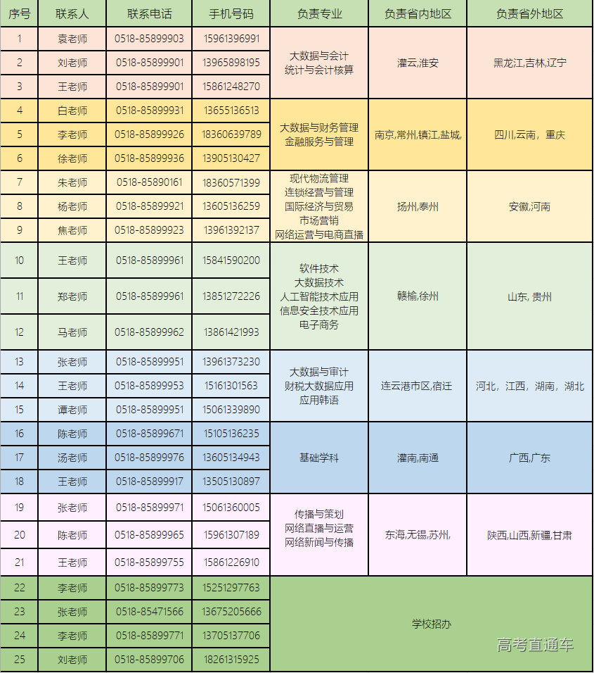2023年各区域负责人、各专业咨询老师联系方式见下表,招生政策有关问题请直接联系表中学校招生办电话。