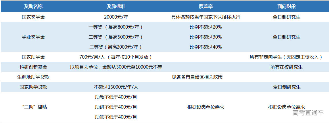 2. 根据北京市财政局、北京市教育委员会制定的《北京市研究生国家奖学金、学业奖学金、国家助学金管理暂行办法》(京财教育〔2013〕2199号),我校面向全日制研究生设置有国家奖学金、学业奖学金和助学金,国家奖学金和学业奖学金按照奖学金评选办法进行评选,助学金面向非定向就业学生。同时,学院设置研究生“三助”岗位,为研究生提供勤工助学机会。