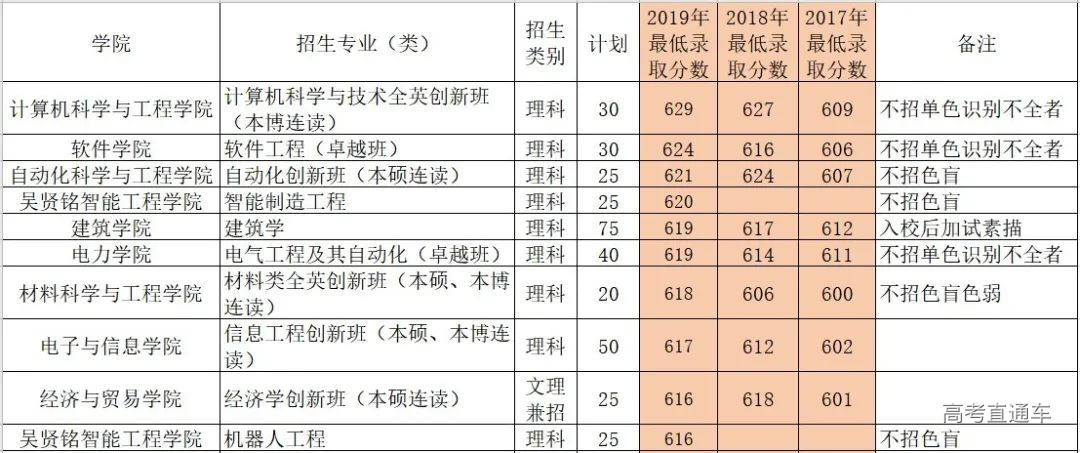 根据2019年的录取情况来看,录取分数最高的是计算机科学与技术全英创新班(本博连读),录取分为629分;录取分数最低的是环境工程(3+2中澳班),录取分为592分。