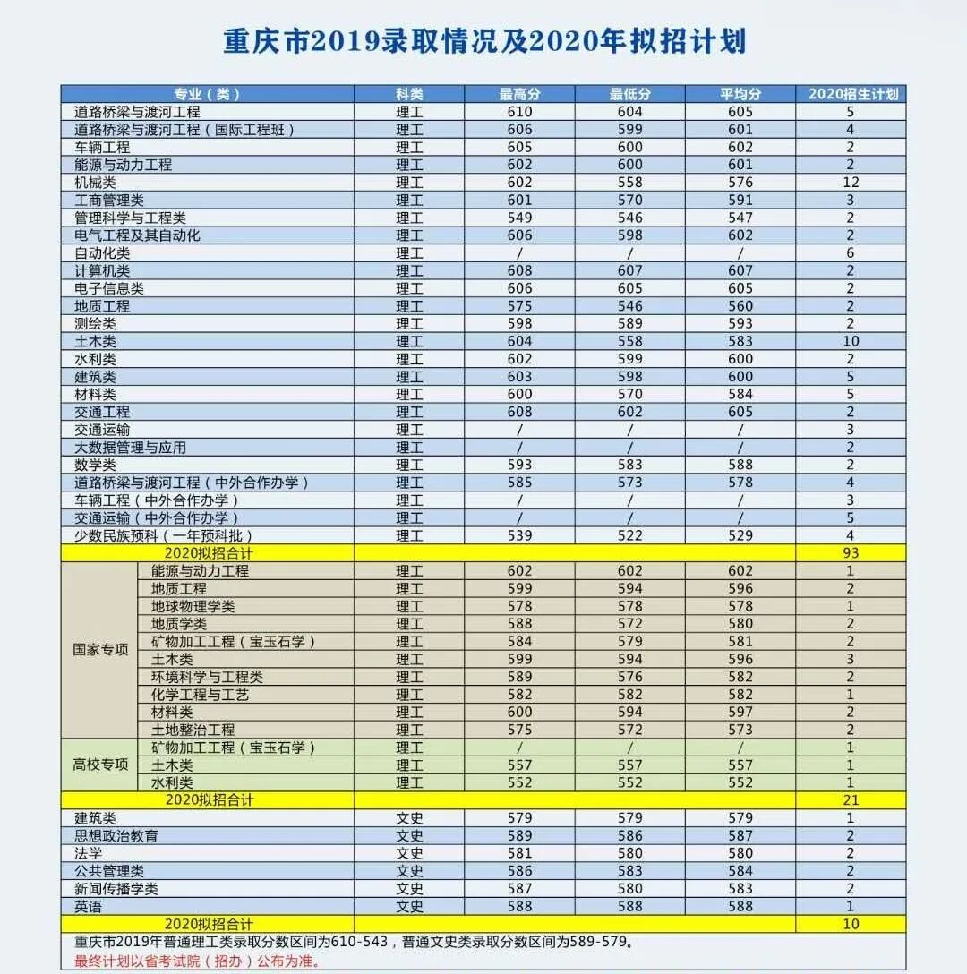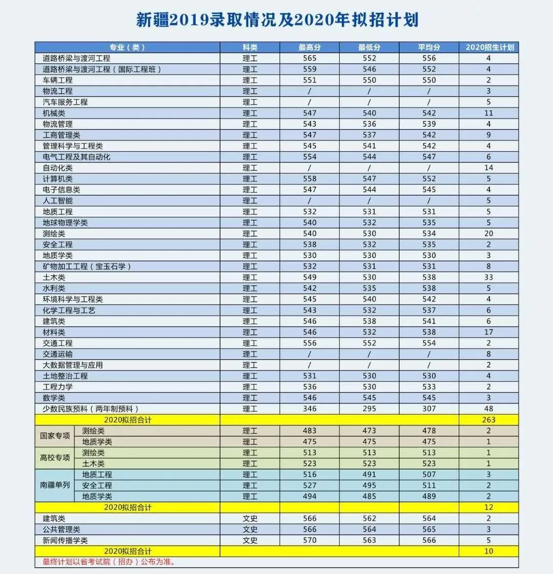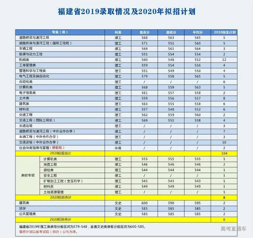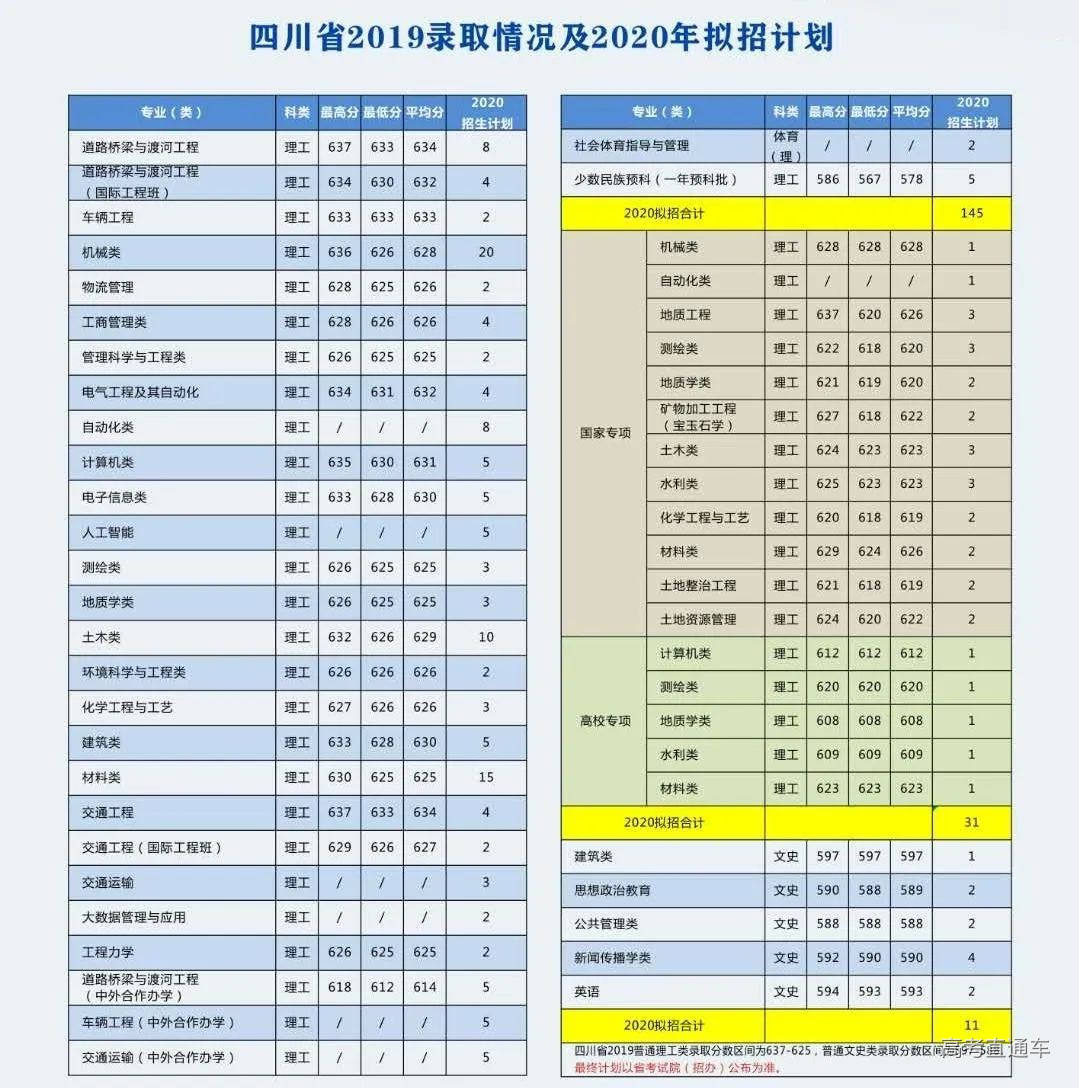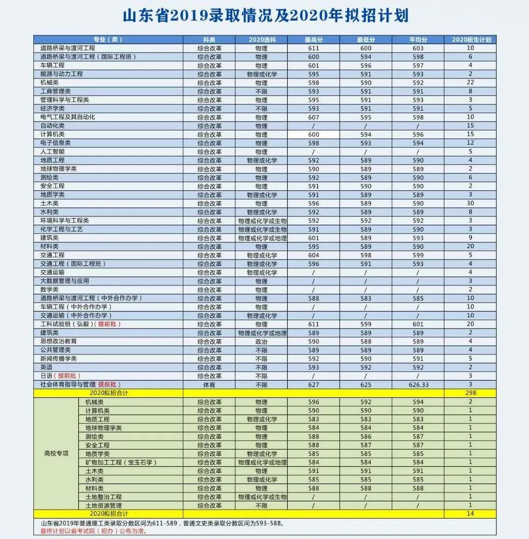 学校简介 长安大学直属国家教育部,是国家首批“211工程”重点建设大学、国家“985优势学科创新平台”建设高校、国家“双一流”建设高校。 学校坚持社会主义办学方向,紧扣立德树人根本任务,秉承“工科优势突出、理科基础深厚、文科繁荣发展”的学科布局,担当“人才培养的摇篮、科学研究的殿堂、社会服务的基地、文化传承创新的高地”的崇高使命,坚持“特色鲜明、国际知名的研究型大学”的目标愿景,成为我国交通运输、国土资源、城乡建设三大行业领域高层次人才培养、高水平科学研究、高质量社会服务的重要基地。 学校工程学、地球科学、材料科学、环境科学与生态学等4个学科进入ESI全球前1%。土木与交通学科雄居U.S.News全球大学第66名,被誉为公路交通人才培养的“黄埔军校”、科技创新的“金名片”。 学校位居历史文化名城西安,坐拥南北两大校区,南倚大雁塔,北邻渭水滨,建有太白山、梁山、渭水三个教学实习基地,校园面积3745亩。学校育人成果丰硕,累计向海内外输送优秀毕业生28万余人,其中外国留学生3000余人。 2019年录取情况及2020年拟招计划 特色培养 工科试验班(本硕分流、提前批次) 主要培养交通运输、国土资源、城乡建设三大行业,具有国际视野、创新能力的领军人才。学校集中优质师资保障教学质量,学生入校后实行通识教育、个性培养,三、四年级根据个人意愿自主选择专业,配备专业导师,可提前进入科研团队。毕业前符合学校相关管理规定,即可以获得免试攻读研究生资格(含我校直博生和公派出国留学)。 国际工程班(本科批次) 面对中国企业拓展海外工程项目的迫切需求,为“中国建造”培养具有跨文化管理能力和国际竞争力的复合创新型涉外高级工程技术人才。国际工程班涵盖学校传统优势专业(道路桥梁与渡河工程、交通工程),融入国际工程教育理念,开设国际工程项目特色课程,采用双语/全英文教学模式,学生就业优势强、选择方向多。 长安都柏林国际交通学院 我校与爱尔兰都柏林大学合作举办的非独立法人中外合作办学机构,以建设交通运输工程领域特色鲜明的国际化学院为目标,致力于培养在交通运输工程领域具有广阔国际视野、复杂工程问题解决能力和全球胜任力的复合型、创新型、“新工科+大交通+国际化”的高端技术管理人才。学院开设道路桥梁与渡河工程、车辆工程、交通运输3个中外合作办学专业,计划招生360人/年,实行