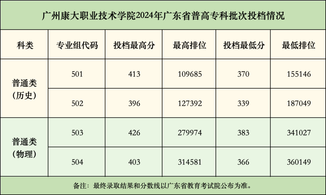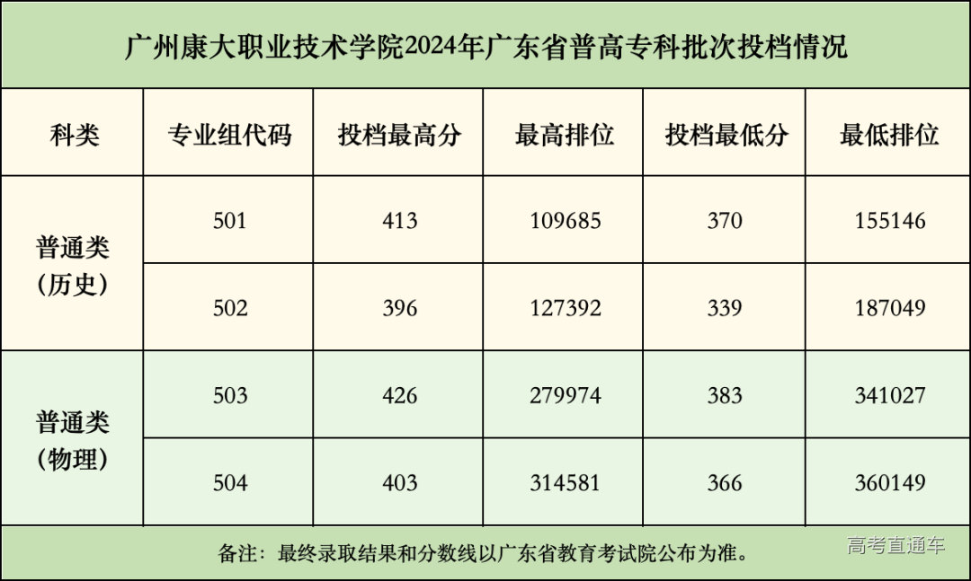 投档情况 普通类(历史): 501专业组(医护类专业) 最低投档分370分,高出省控制线170分; 502专业组(计算机类专业) 最低投档分339分,高出省控制线139分。 普通类(物理): 503专业组(医护类专业)最低投档分383分,高出省控制线183分; 504专业组(计算机类专业)最低投档分366分,高出省控制线166分。 2024 x KANG DA