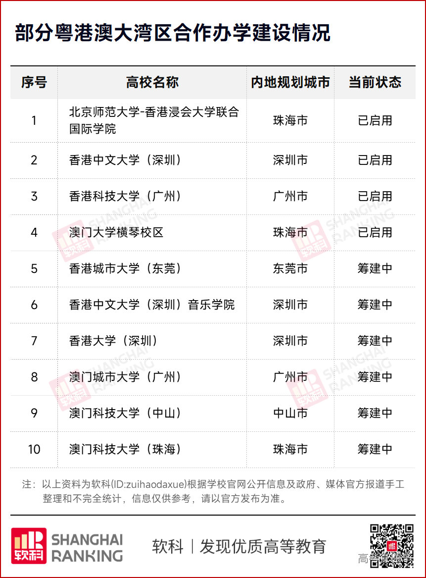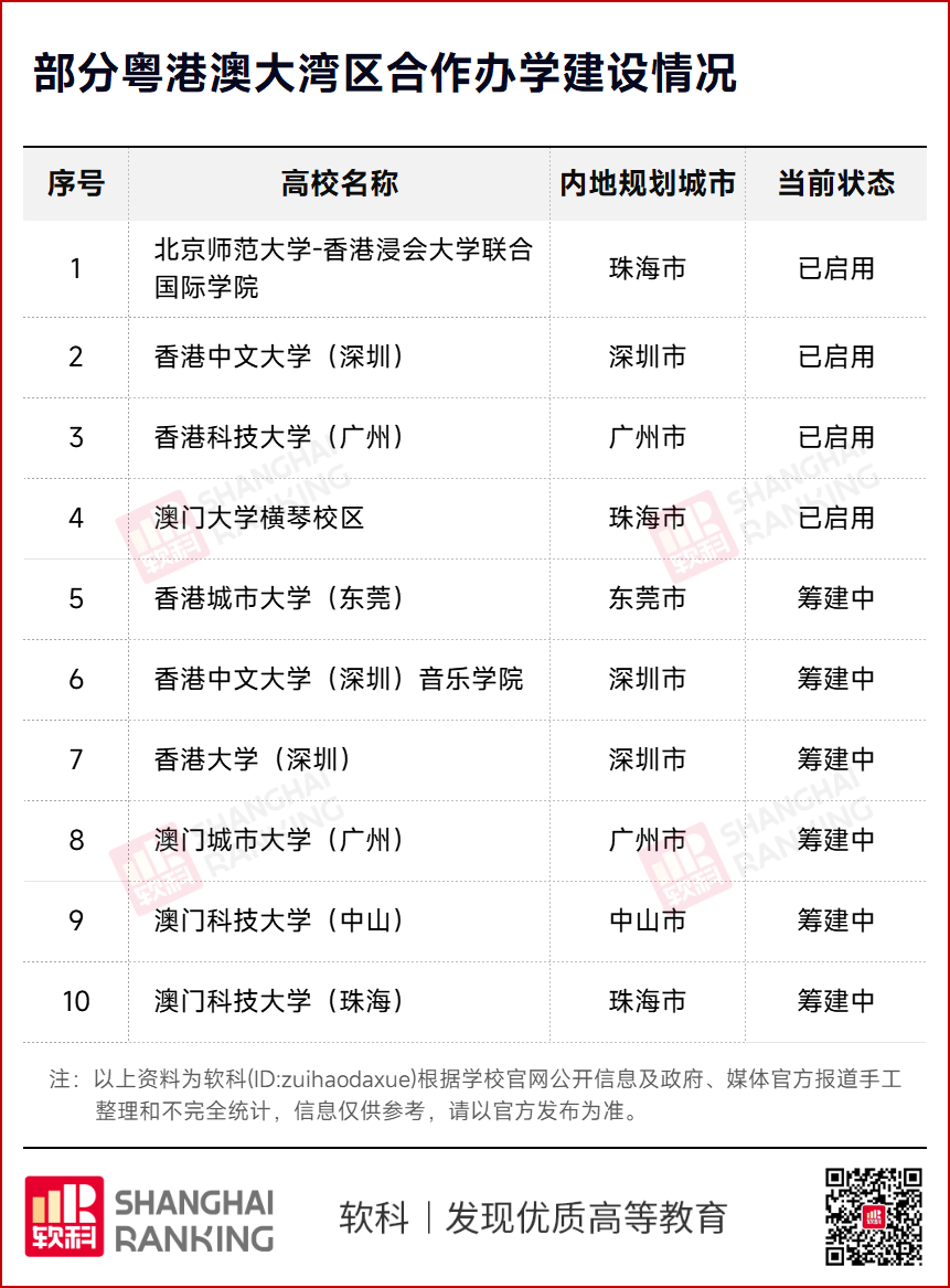 除了以上3所已经落地建成的高校,以及已正式建立的澳门大学横琴校区外,一批新合办高校也正在建设或筹备建设当中。