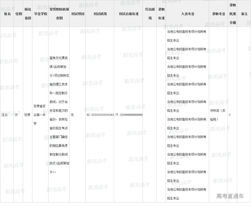 ③高校对学科特长或创新潜质特别突出的个别优秀考生一本批次录取控制分数线下破格录取的用D标注;