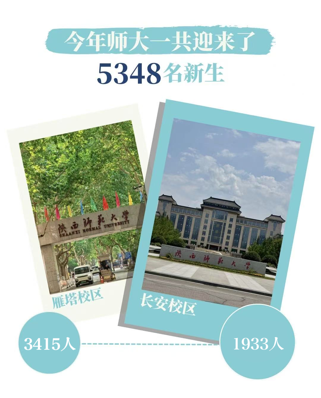 今年学校两个校区共招收5348名新生