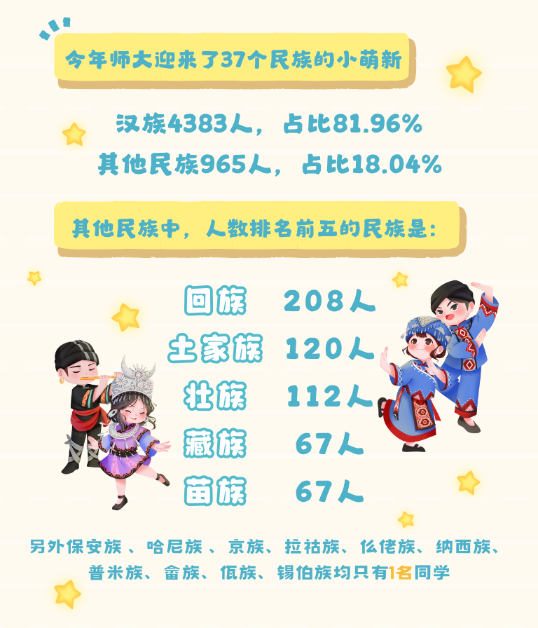 今年师大迎来了37个民族的小萌新~